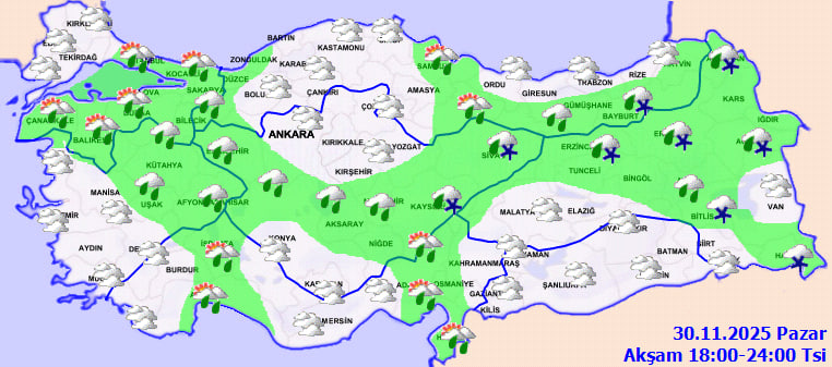 Yağışların kıyı ve iç kesimlerde farklı karakterler göstermesi öngörülüyor. Sağanak ve gök gürültülü sağanak biçiminde görülecek yağışlar, İç Anadolu'nun doğusunda, Doğu Anadolu'nun kuzey ve doğusunda ayrıca Doğu Karadeniz'in yükseklerinde yer yer karla karışık yağmur ve yüksek kesimlerde kar şeklinde olacak.