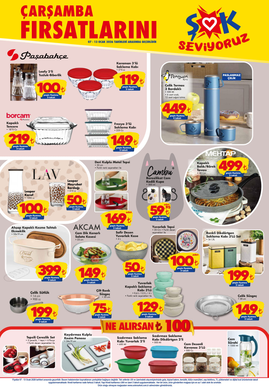 ŞOK Marketler'in 7-13 Ocak tarihli aktüel kataloğu açıklandı. Haftanın Fırsatları listesinde Columbia mont ve yağmurluklardan termostatlı yuvarlak fırına, ısıtıcıdan mikrodalga fırına kadar birçok ürün dikkat çekiyor. Çelik termos, kapaklı balık/börek tavası ve tek kişilik pamuklu battaniye de katalogda yer alıyor.