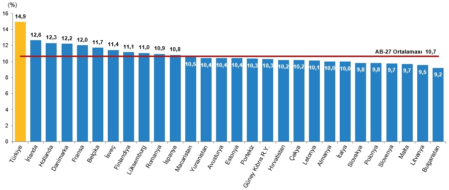 Avrupa Birliği üyesi 27 ülkenin genç nüfusu ile karşılaştırıldığında Türkiye hala önde yer alıyor. Avrupa Birliği ülkelerinde genç nüfus ortalaması %10,7 iken, Türkiye ise %14,9 ile bu oranın oldukça üzerinde bulunuyor. Genç nüfus oranının en düşük olduğu ülkeler arasında ise Bulgaristan %9,2 ile dikkat çekiyor.