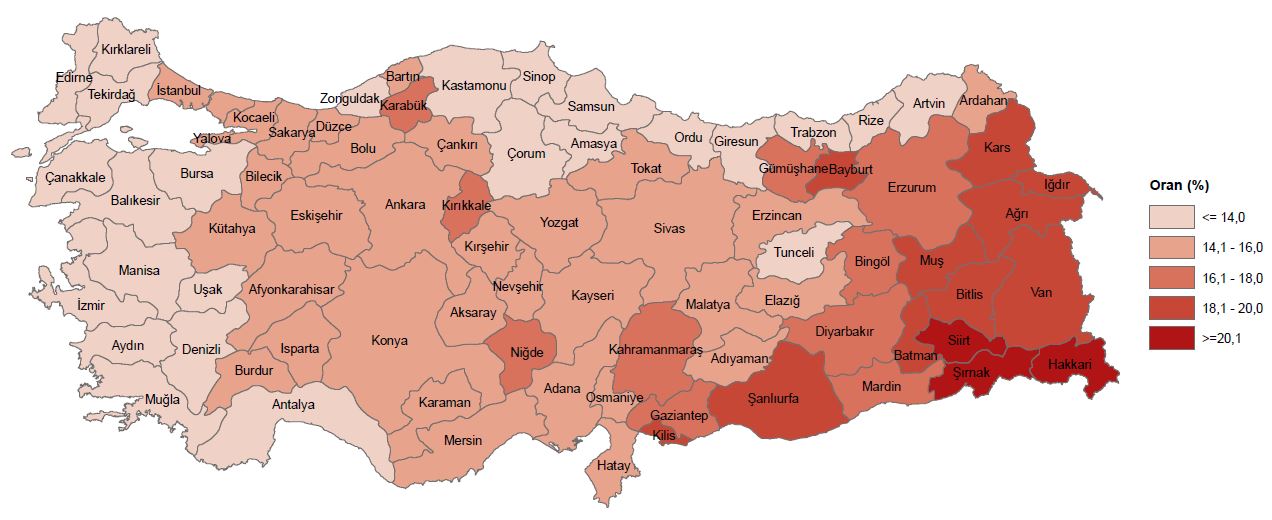 ADNKS sonuçlarına göre, Hakkari %20,8 ile genç nüfus oranının en yüksek olduğu il oldu. Balıkesir ise %11,8 ile genç nüfusun en düşük olduğu il olarak listenin sonunda yer aldı.