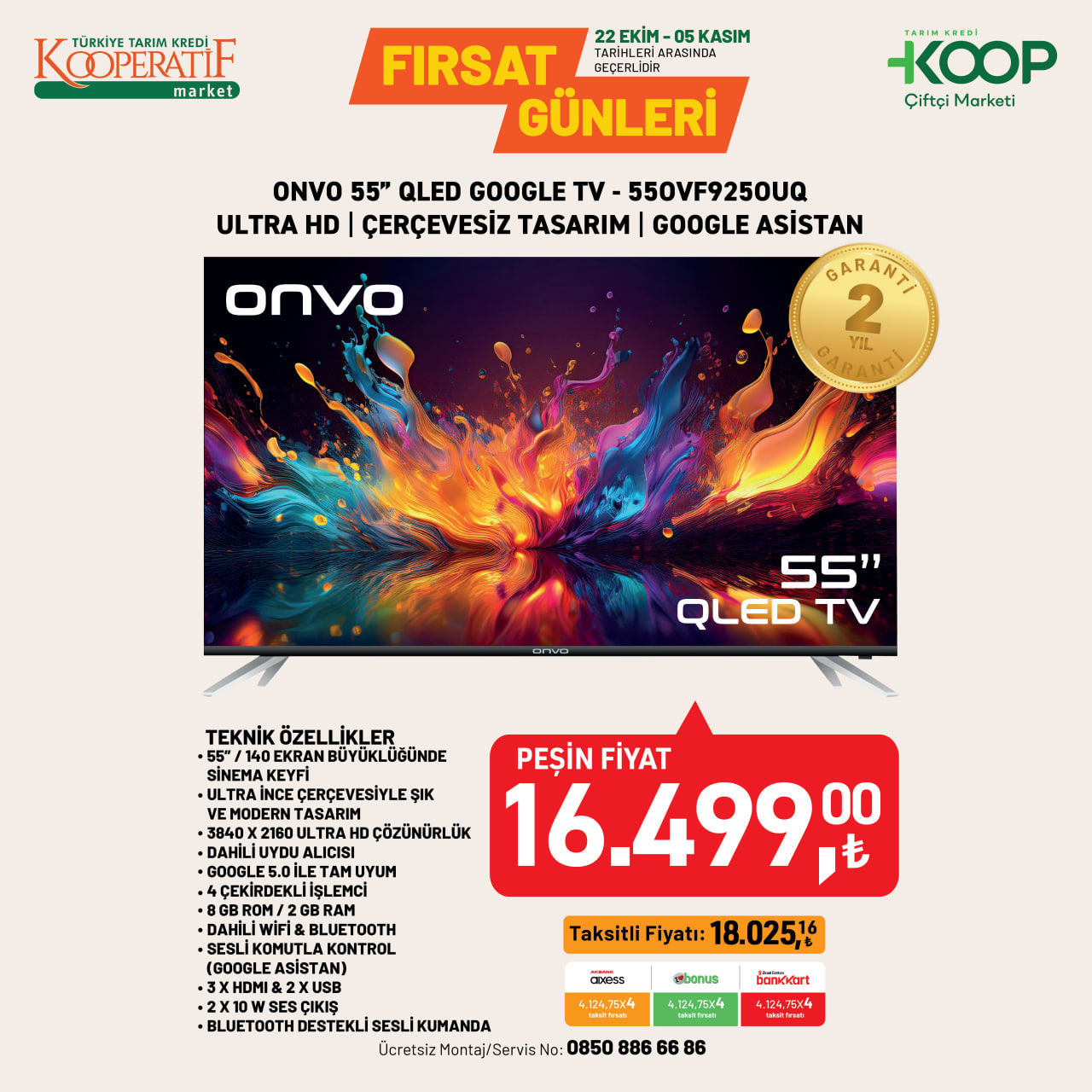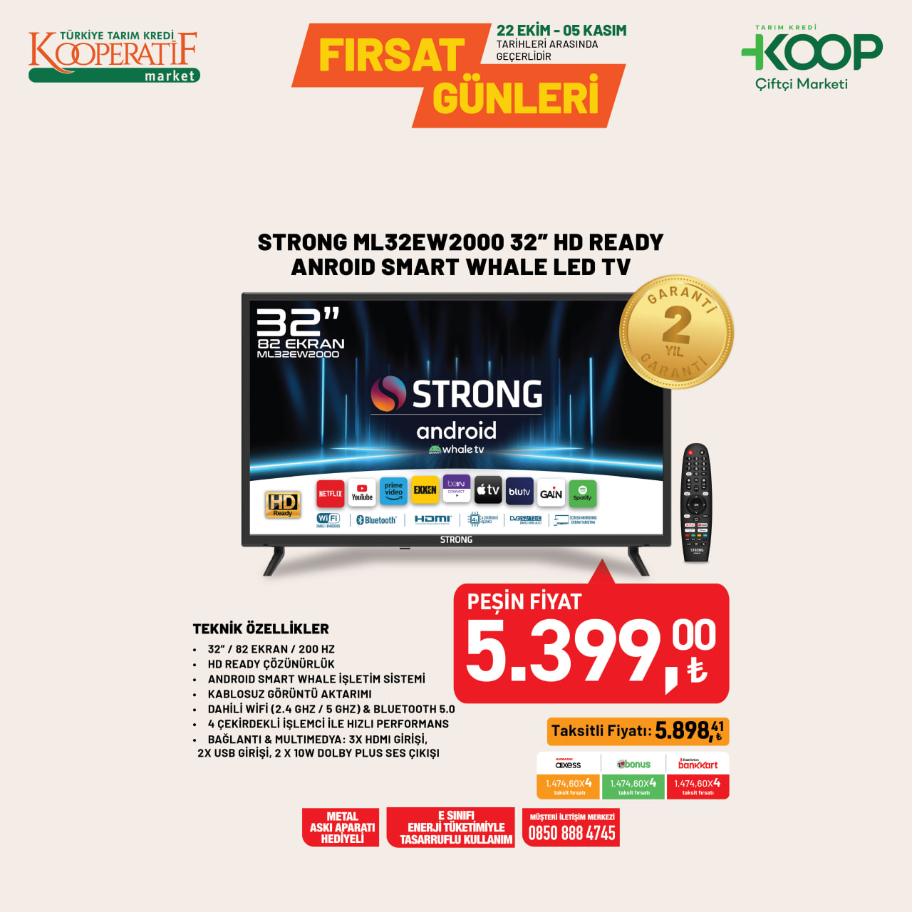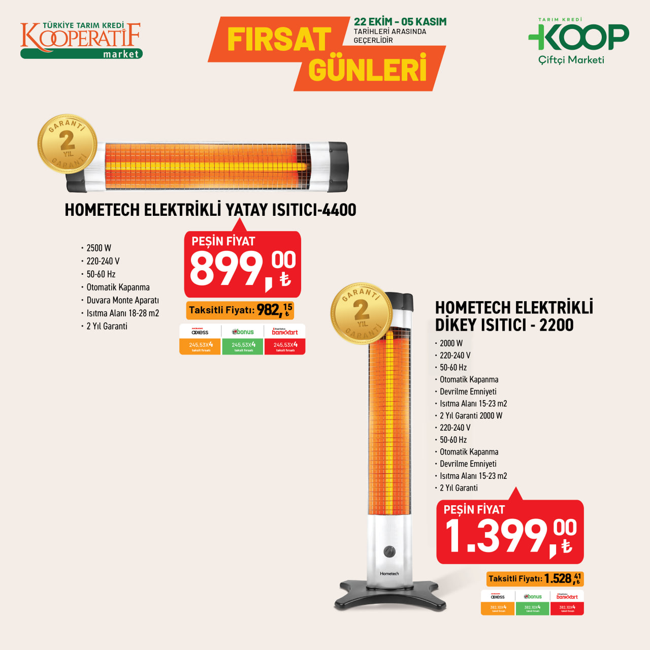 Tarım Kredi Market’te dev indirim! 5.399 TL’ye akıllı televizyon, 1.399 TL’ye dikey ısıtıcı fırsatı