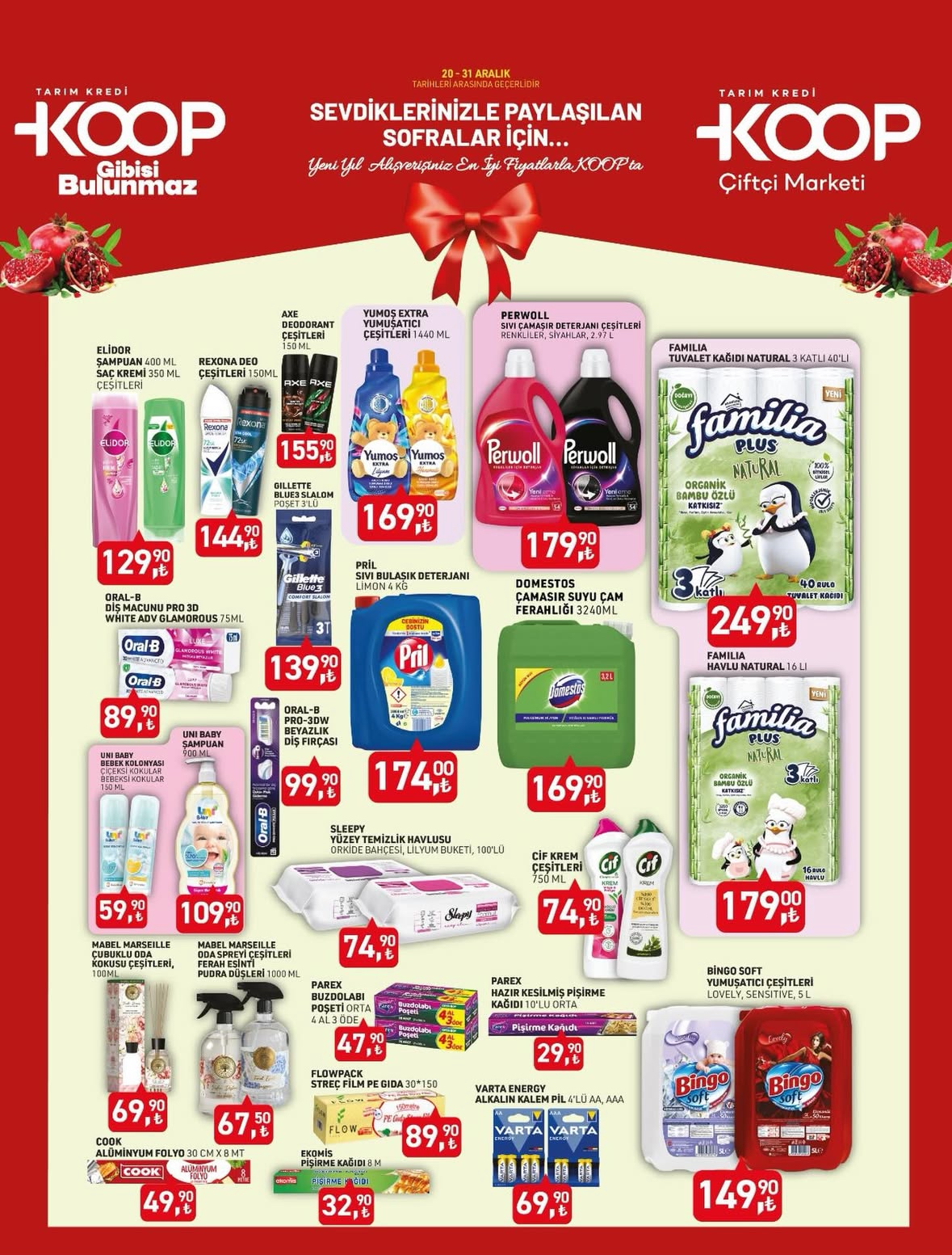 Yeni yıl alışverişine özel kampanyasını duyuran Tarım Kredi KOOP, birçok üründe indirimli fiyatlarıyla öne çıkıyor. 20–31 Aralık tarihleri arasında geçerli kampanya kapsamında hem mutfak hem de ev ihtiyaçları ekonomik seçeneklerle tüketicilerle buluşuyor. İşte yıl sonu kampanyası ile avantajlı ürünler listesinin tamamı...