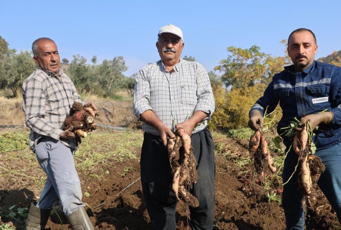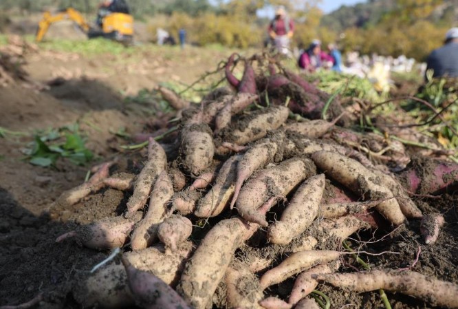 Antakya ilçesi Uzunalıç Mahallesi'nde çiftçilerin sökümüne başladığı tatlı patates, bilinen patatesin aksine bir tada sahip olmasıyla biliniyor.