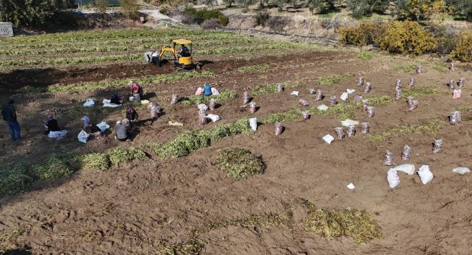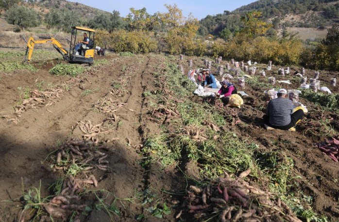 Bölgede hasat edilerek Türkiye'nin dört bir yanına satılan tatlı patatesin hasadında sona gelinirken, kilogram fiyatı tarlada 30 TL'den alıcı buluyor.