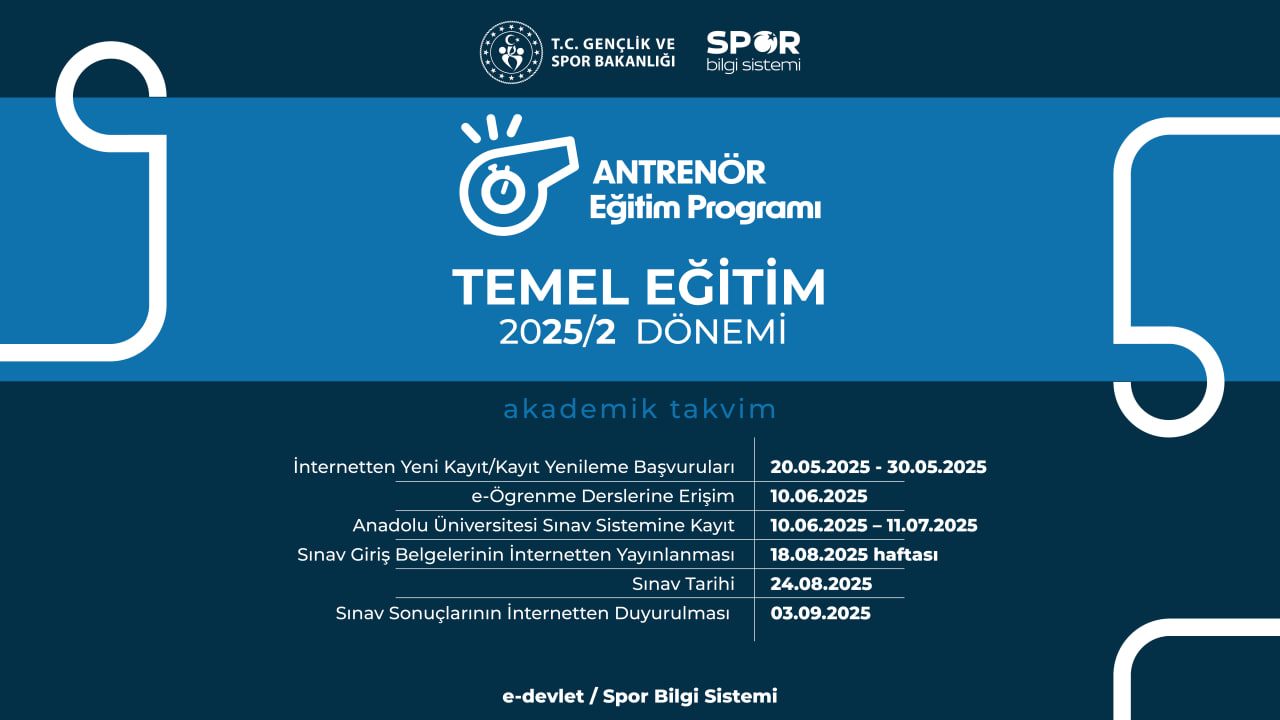 Anadolu Üniversitesi akademik takvimine göre Temel Eğitim Antrenörlük sınav sonuçları 3 Eylül 2025 itibarıyla duyurulacak.