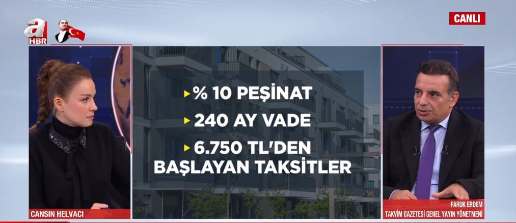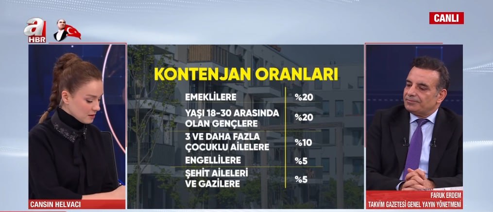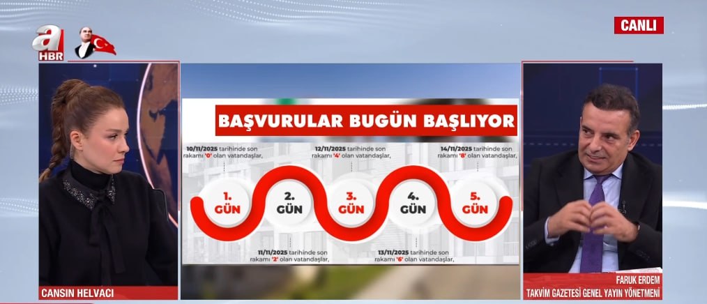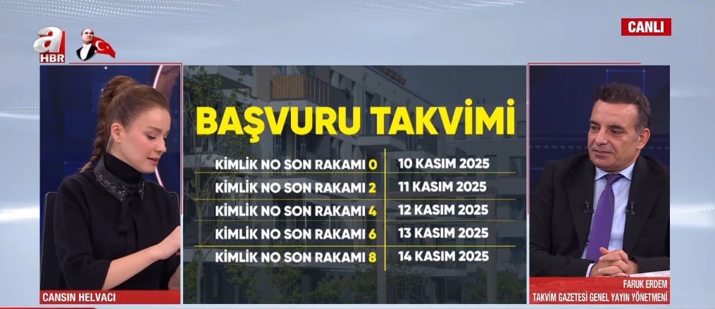 Cumhuriyet tarihinin en kapsamlı sosyal konut projesinde beklenen gün geldi. Başvurular bugün itibarıyla resmen başladı. A Haber ekranlarında projeye dair tüm merak edilenleri anlatan Takvim Gazetesi Genel Yayın Yönetmeni Faruk Erdem, kimlerin başvurabileceğini, sürecin nasıl işleyeceğini ve dikkat edilmesi gereken ayrıntıları tek tek açıkladı.