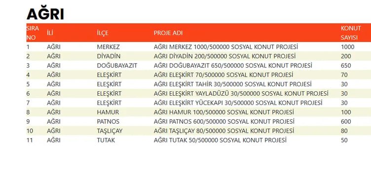 | 11 | Ağrı | Tutak | Ağrı Tutak 50/500000 Sosyal Konut Projesi | 50 |