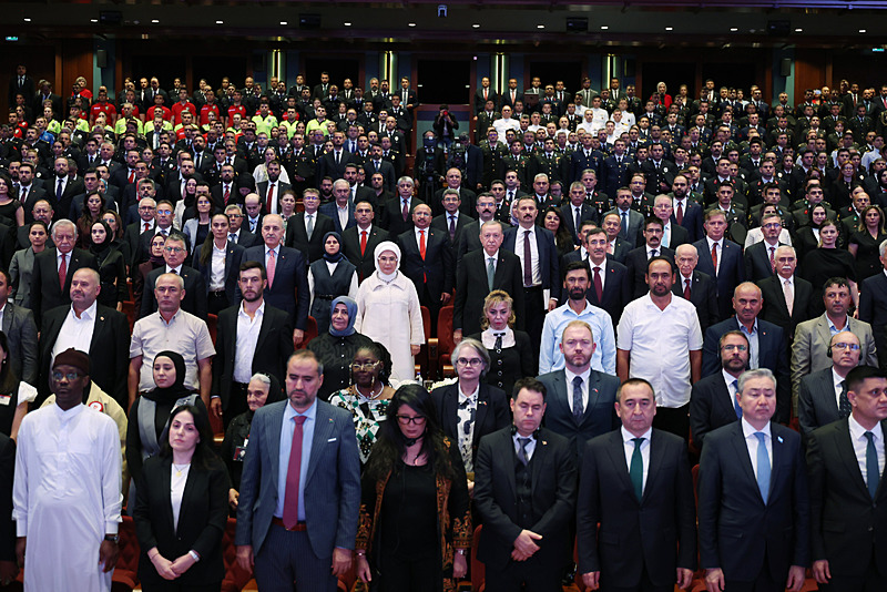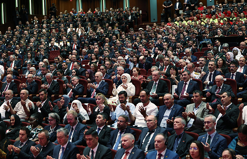 Özel törende önemli açıklamalarda bulunan Başkan Erdoğan, ''30 Ağustos Zafer Bayramı münasebetiyle tertip ettiğimiz Zafer Bayramı konser programımızı teşrif eden her bir konuğumuza teşekkür ediyorum. Cumhurbaşkanlığı külliyemize, milletin evine, bu gazi mekana hepiniz hoş geldiniz, sefalar getirdiniz. Bu anlamlı etkinliğin aramızdaki birlik ve beraberliği güçlendirmesini, dayanışmamızı daha da arttırmasını temenni ediyorum'' diye konuştu.