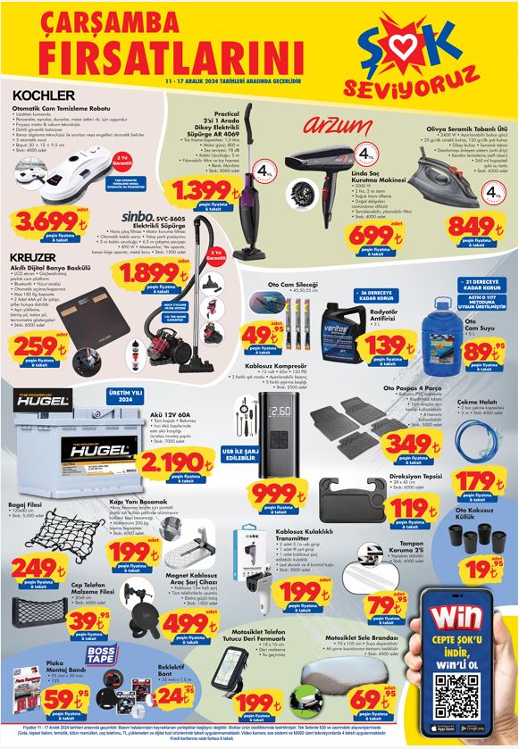 Bu hafta ŞOK Market raflarında yer alacak birbirinden cazip ürünler hem bütçe dostu fiyatları hem de geniş ürün yelpazesiyle dikkat çekiyor. Cam temizleme robotu indirimler arasında öne çıkıyor. Gıda kategorisinde yapılan indirimler vatandaşların ceplerini güldürüyor. Peki, 11 Aralık itibariyle ŞOK marketlerde hangi ürünler indirimde? İşte ŞOK aktüel katalog indirim listesi…