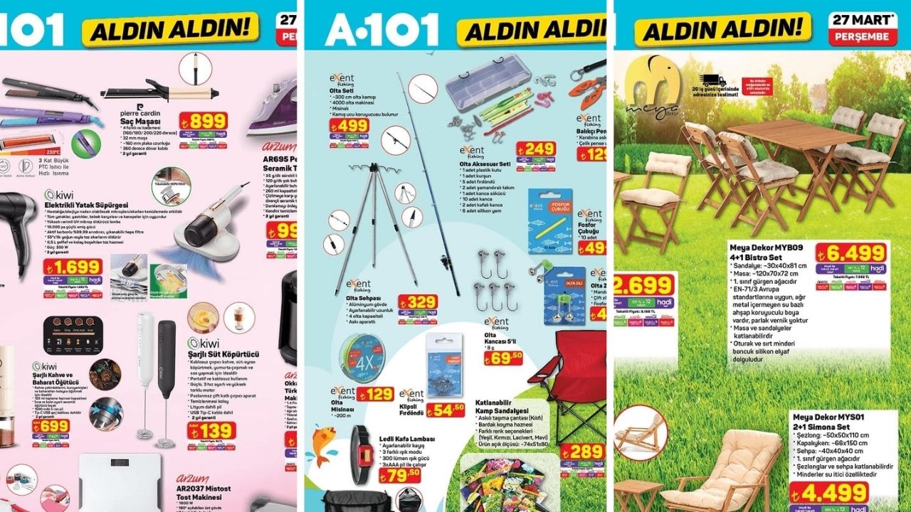 A101 27 Mart indirim kataloğu: Olta seti 499 TL, Balıkçı pensesi 129 TL, Katlanabilir kamp sandalyesi 289 TL...