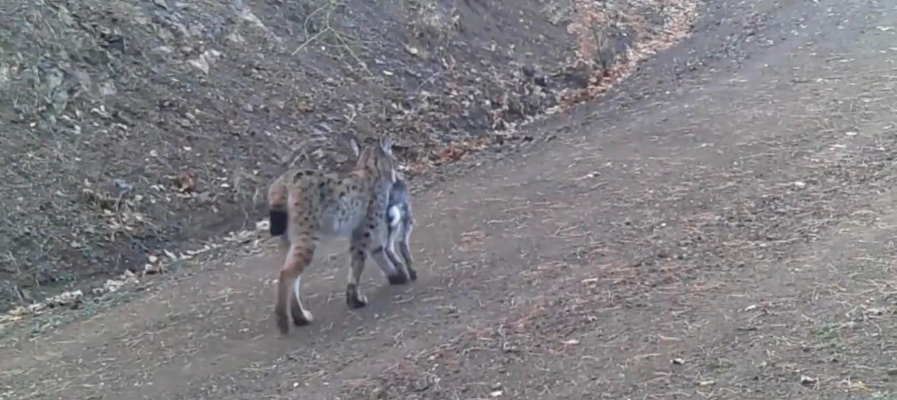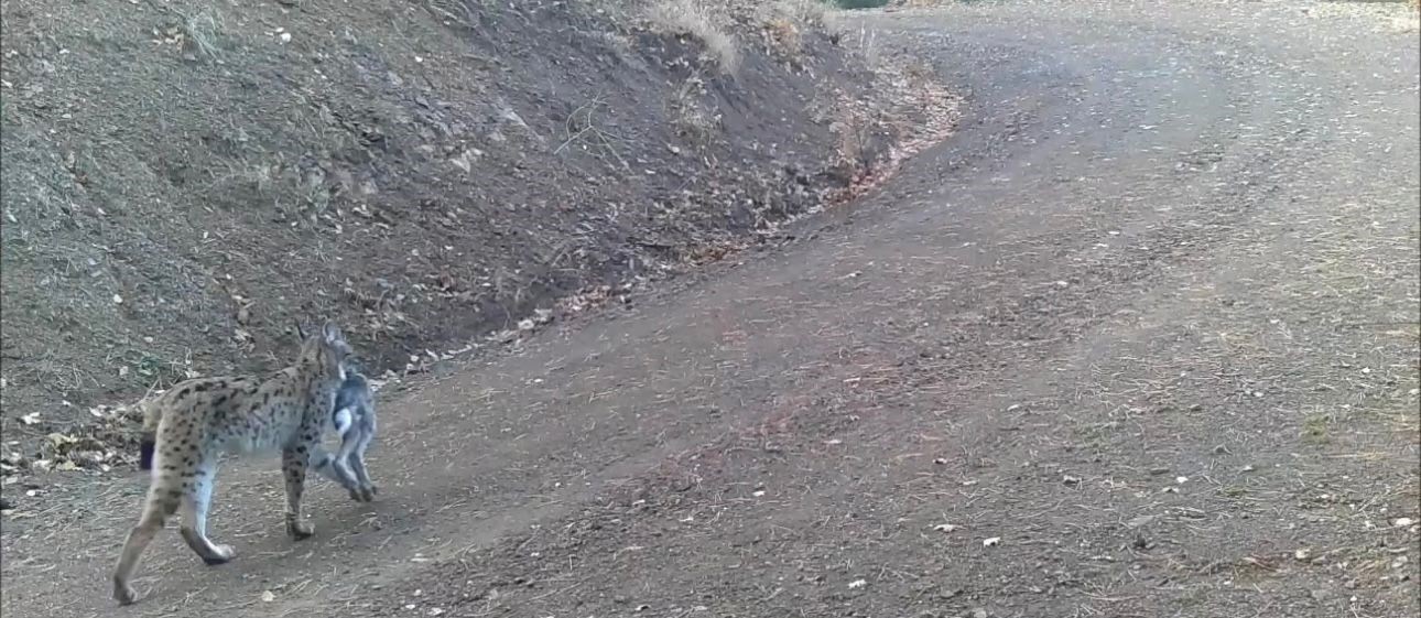 Nesli tehlike altında bulunan bir vaşağın ağzında avladığı hayvanı taşıdığı anlar da kameraya yansıdı.