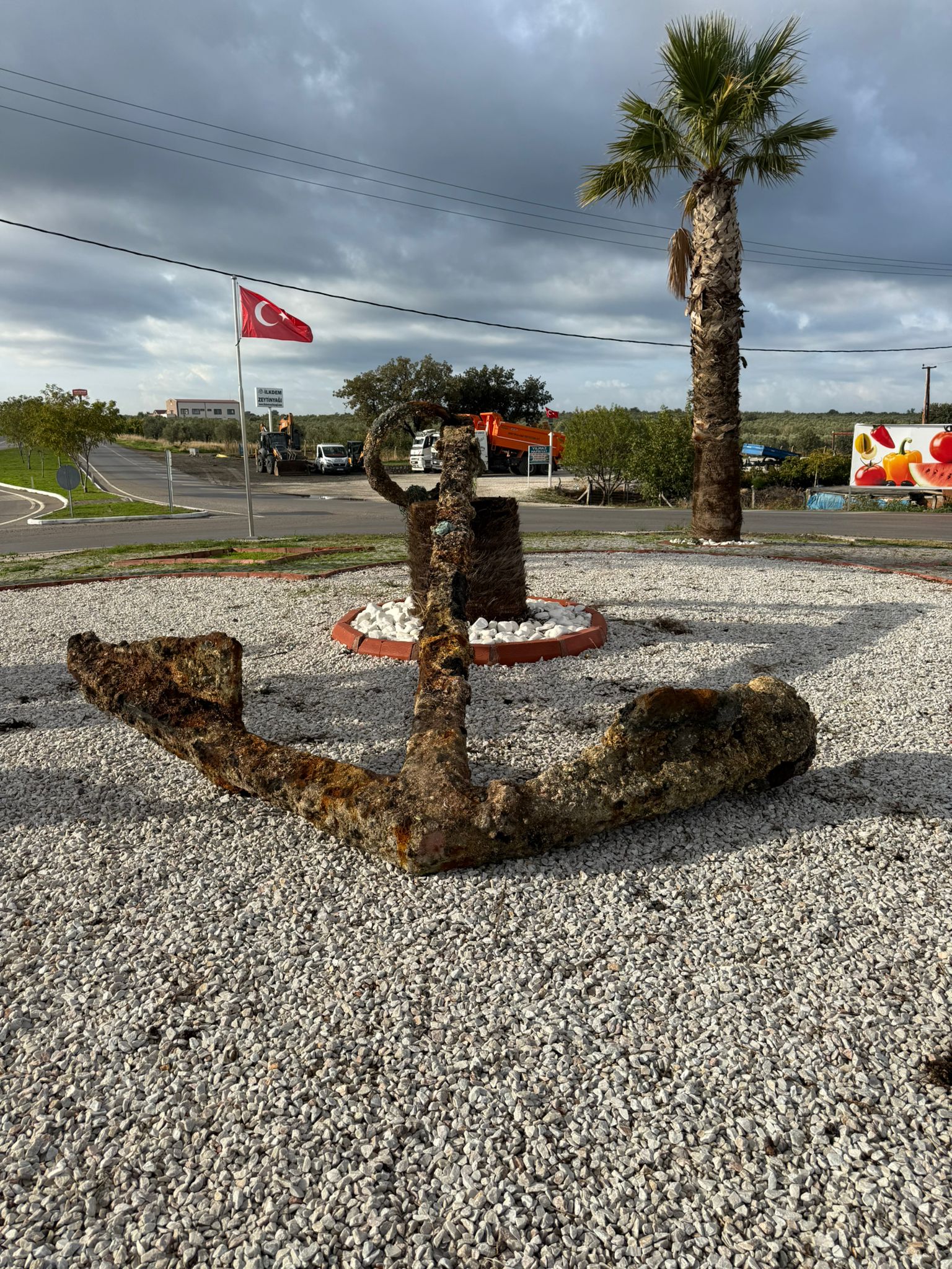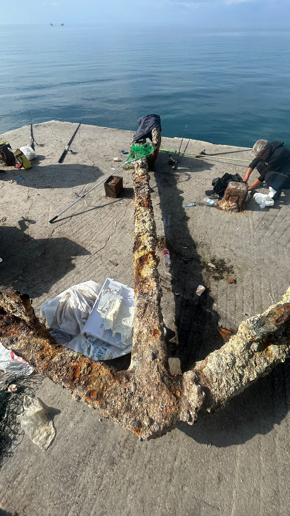 Vinç yardımıyla iskeleye çıkarılan 3 ton ağırlığındaki çapa, Geyikli Belediyesi'nce buradan alınarak sergilenmek üzere beldedeki Bayraklı kavşağına götürüldü.