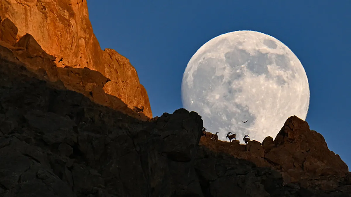 Gürpınar'ın 2 bin 500 rakımlı zirvesinde seyrine doyum olmayan anlar kayda geçti. Koruma altındaki yaban keçilerinin dolunayla bütünleştiği o kareler, görenleri hayran bıraktı.