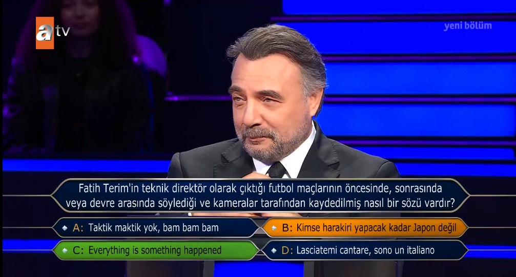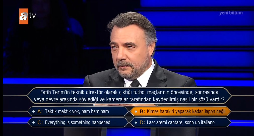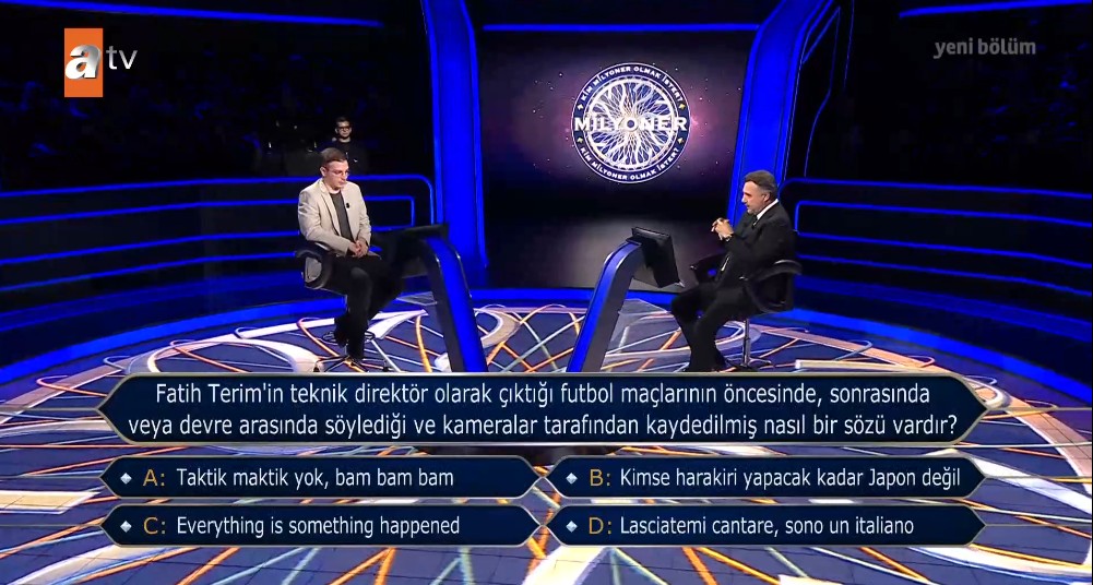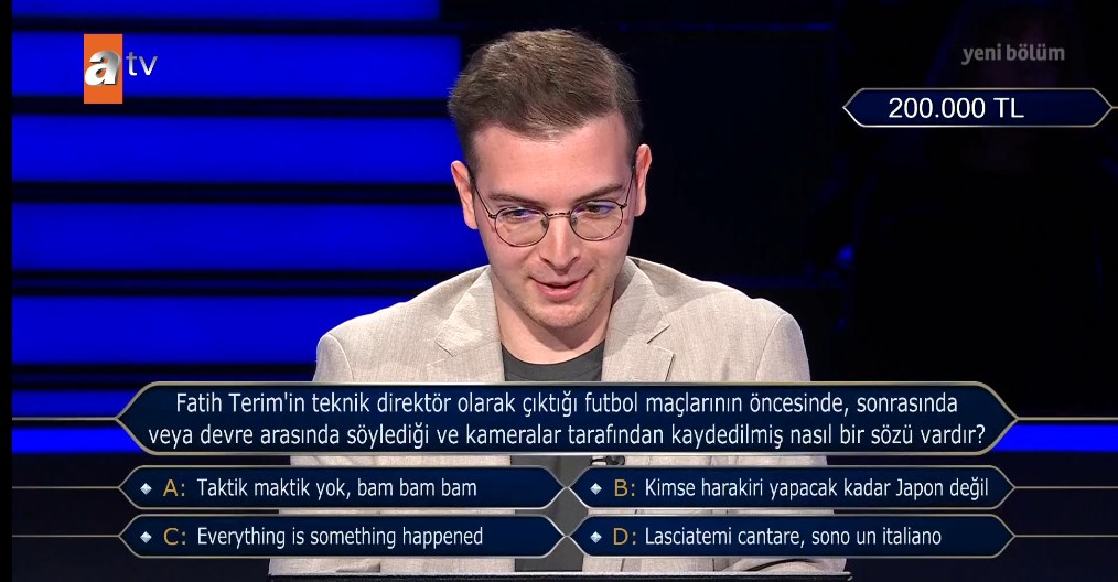 ATV ekranlarının vazgeçilmez bilgi yarışması 'Kim Milyoner Olmak İster', Oktay Kaynarca'nın sunumuyla her Perşembe ve Pazar akşamı izleyicilerle buluşmaya devam ediyor. Yıllardır ilgiyle takip edilen yarışma, 27 Ekim 2025 akşamı da bilgi ve heyecanın zirveye çıktığı anlara sahne oldu. Bu bölümde yarışan isimlerden biri olan Ömer Taha Şişmanoğlu, soruları başarılı şekilde yanıtlayarak, 200.000 TL değerindeki soruya kadar ilerlemeyi başardı. Yarışmada sorulan futbol sorusu sosyal medyada büyük yankı uyandırırken, cevabı da kullanıcılar arasında merak konusu oldu. İşte o çok konuşulan soru ve doğru cevap...