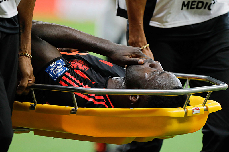 Kısa süreli bilinç kaybı yaşayan Davinson Sanchez'e sağlık ekipleri hemen müdahele etti ve sedyeyle kenara alındı.