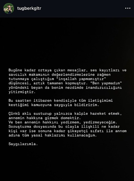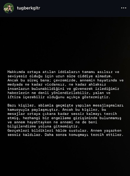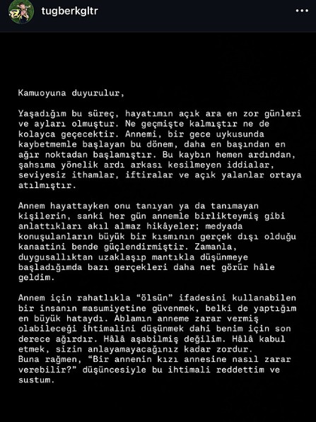 Annesinin ölümünün ardından hakkında çok sayıda asılsız iddia ortaya atıldığını ifade eden Gülter, kamuoyunu yanıltan kişi ve paylaşımlar hakkında da hukuki süreç başlatacağını duyurdu.