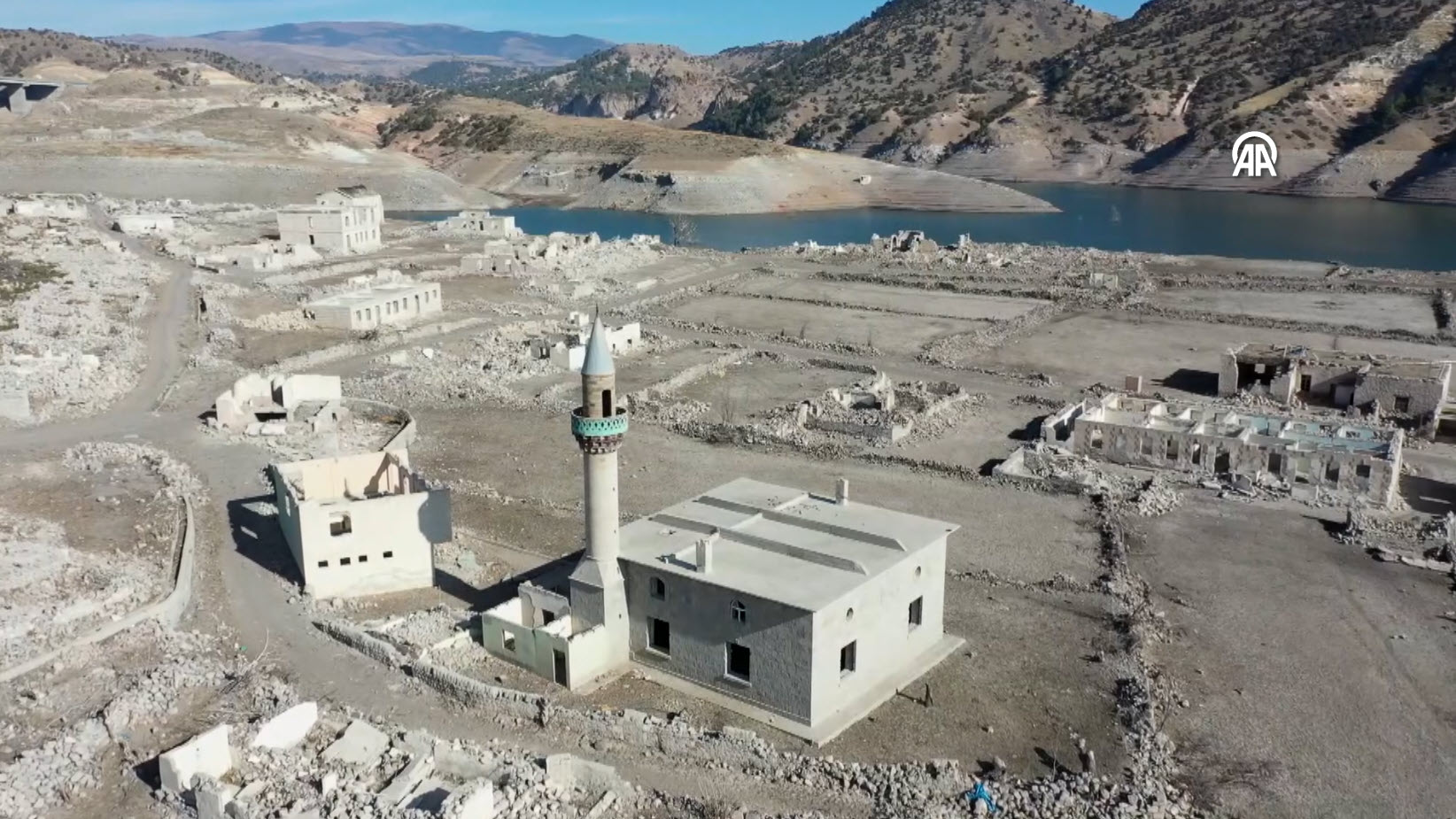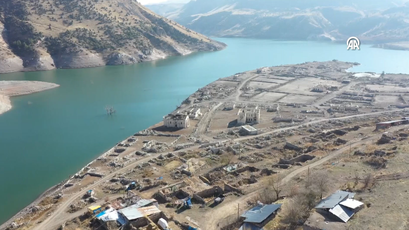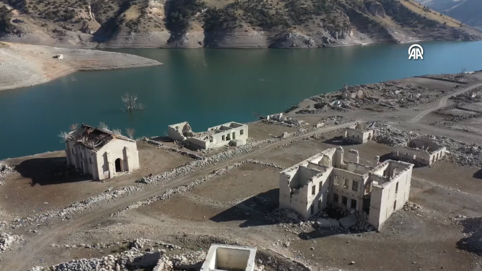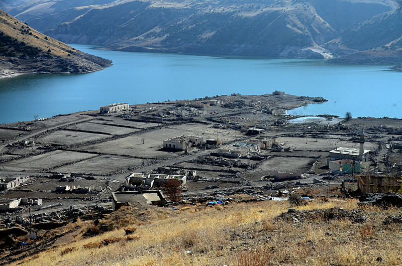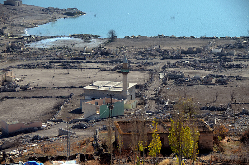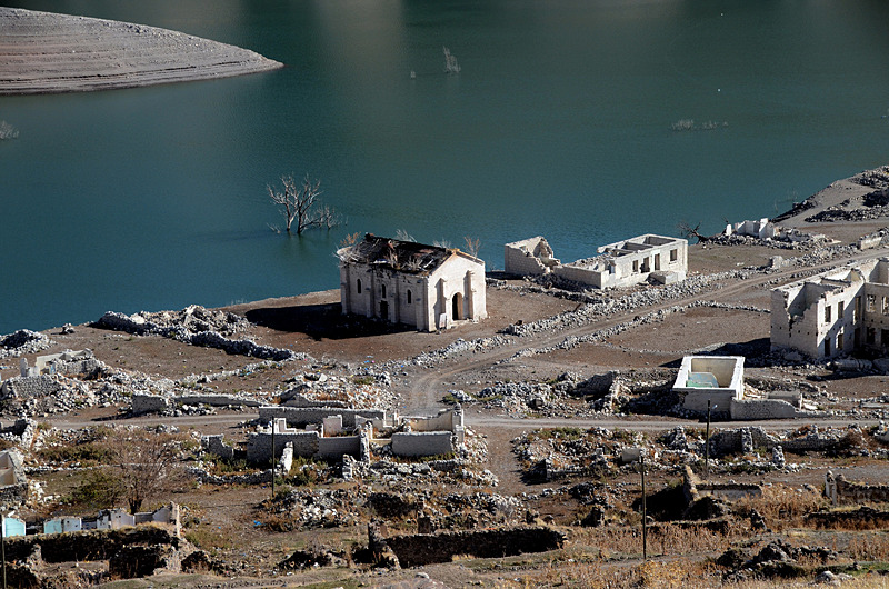 Baraj kapaklarının kısmen açılmasıyla su seviyesi düşünce köydeki evler, cami, kilise ve bazı tarihi binalar gün yüzüne çıktı.