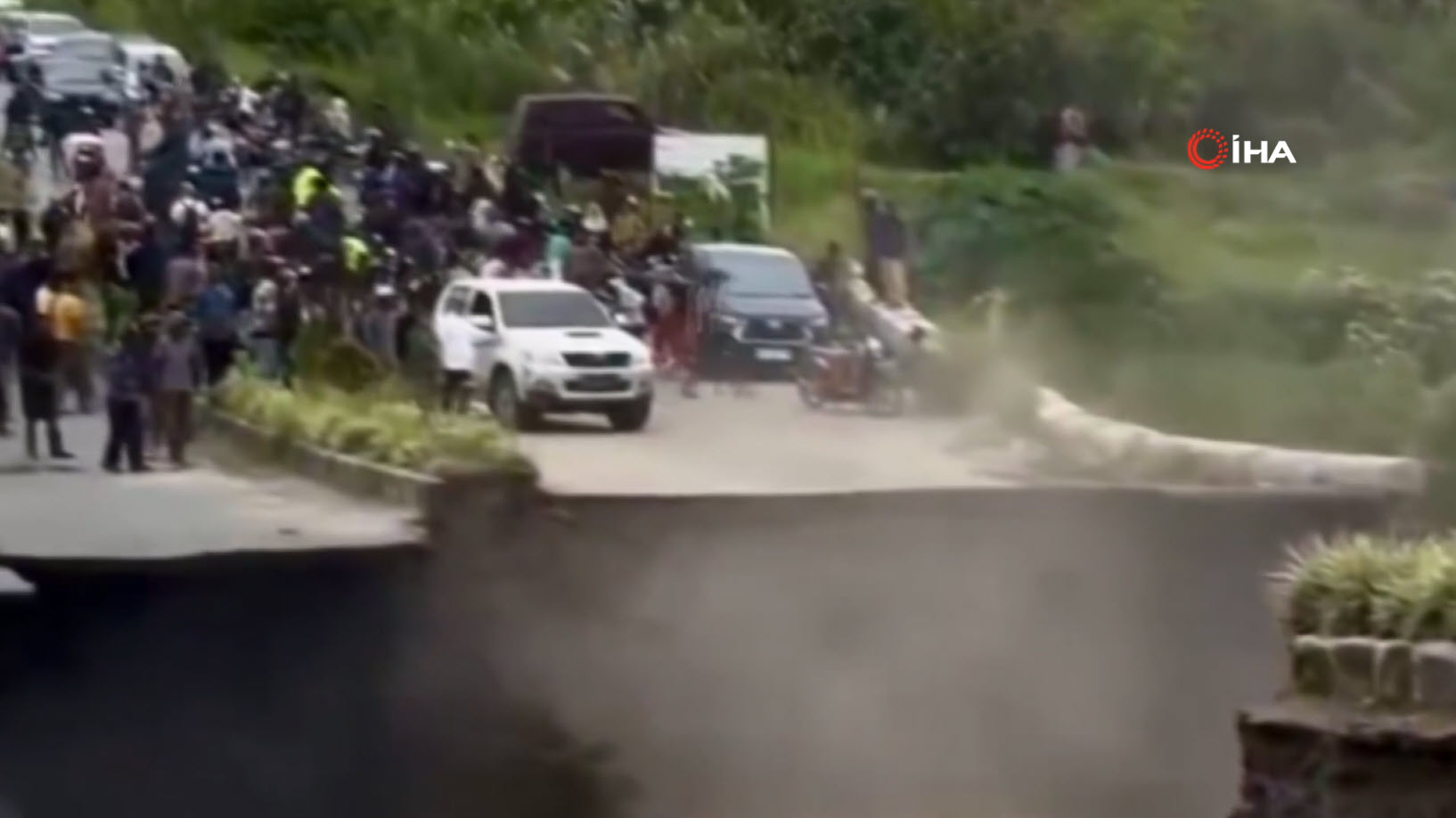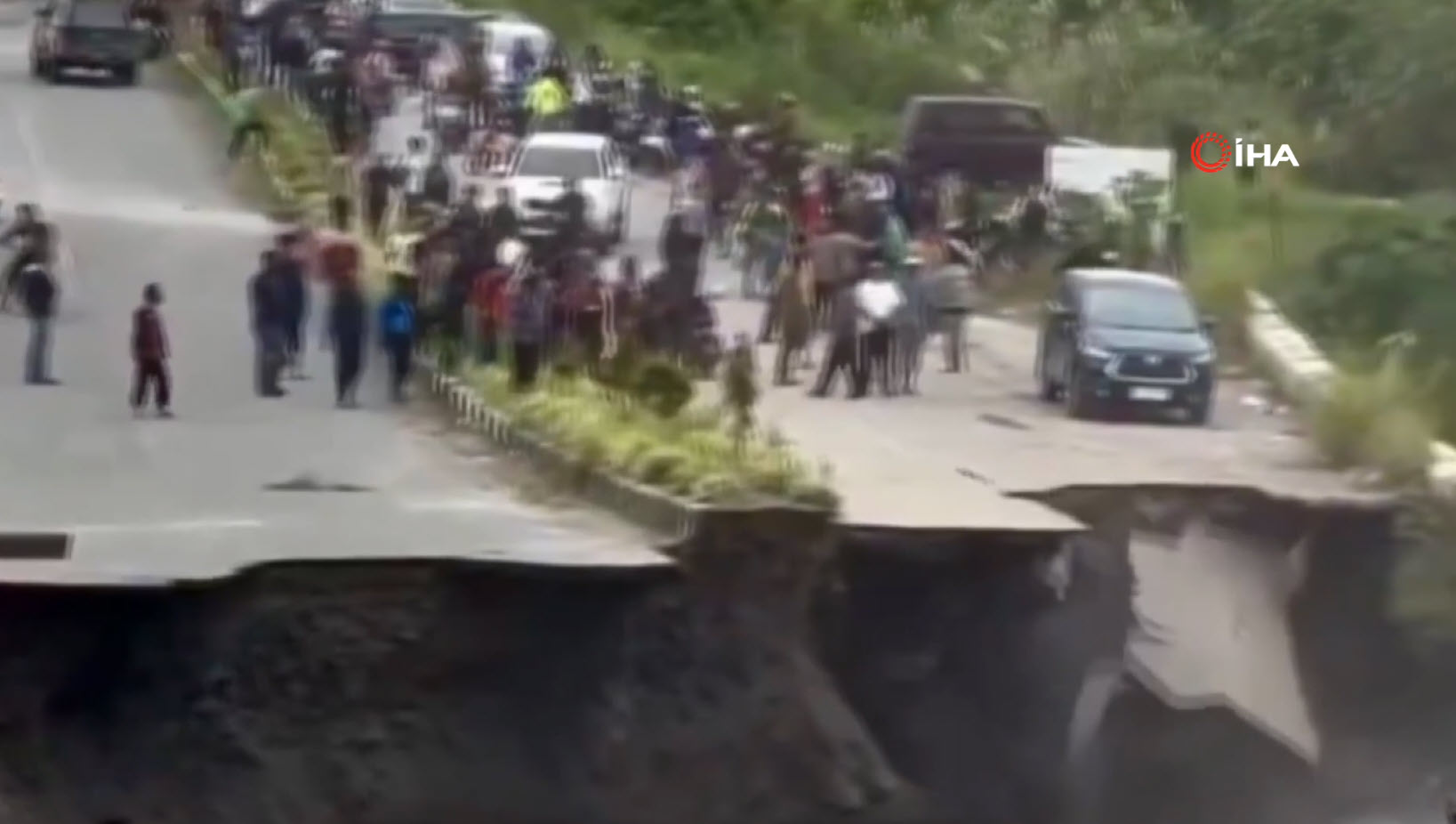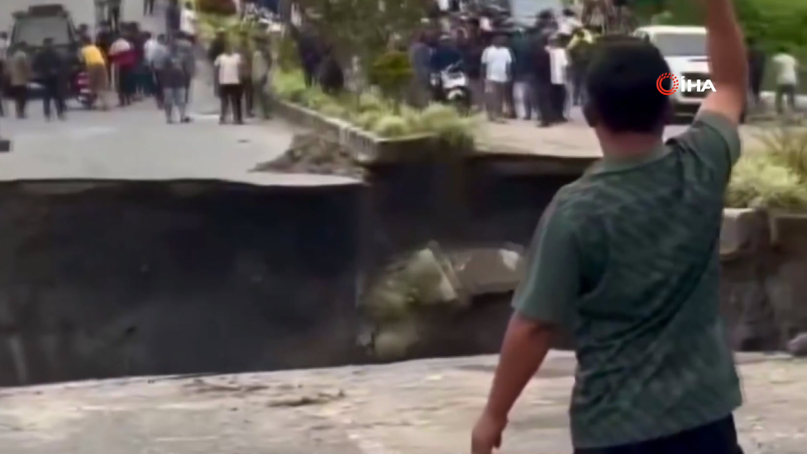 Görüntüler Endonezya'da kayda geçti. Sel ve heyelanların 770 can aldığı bölgede facianın eşiğinden dönüldü. Üzerinde araçların ve insanların olduğu yolun çöktüğü o anları izleyenlerin kanı dondu. Kaçan insanlar bir yandan da o anları telefonlarıyla kaydetmeye çalıştı.