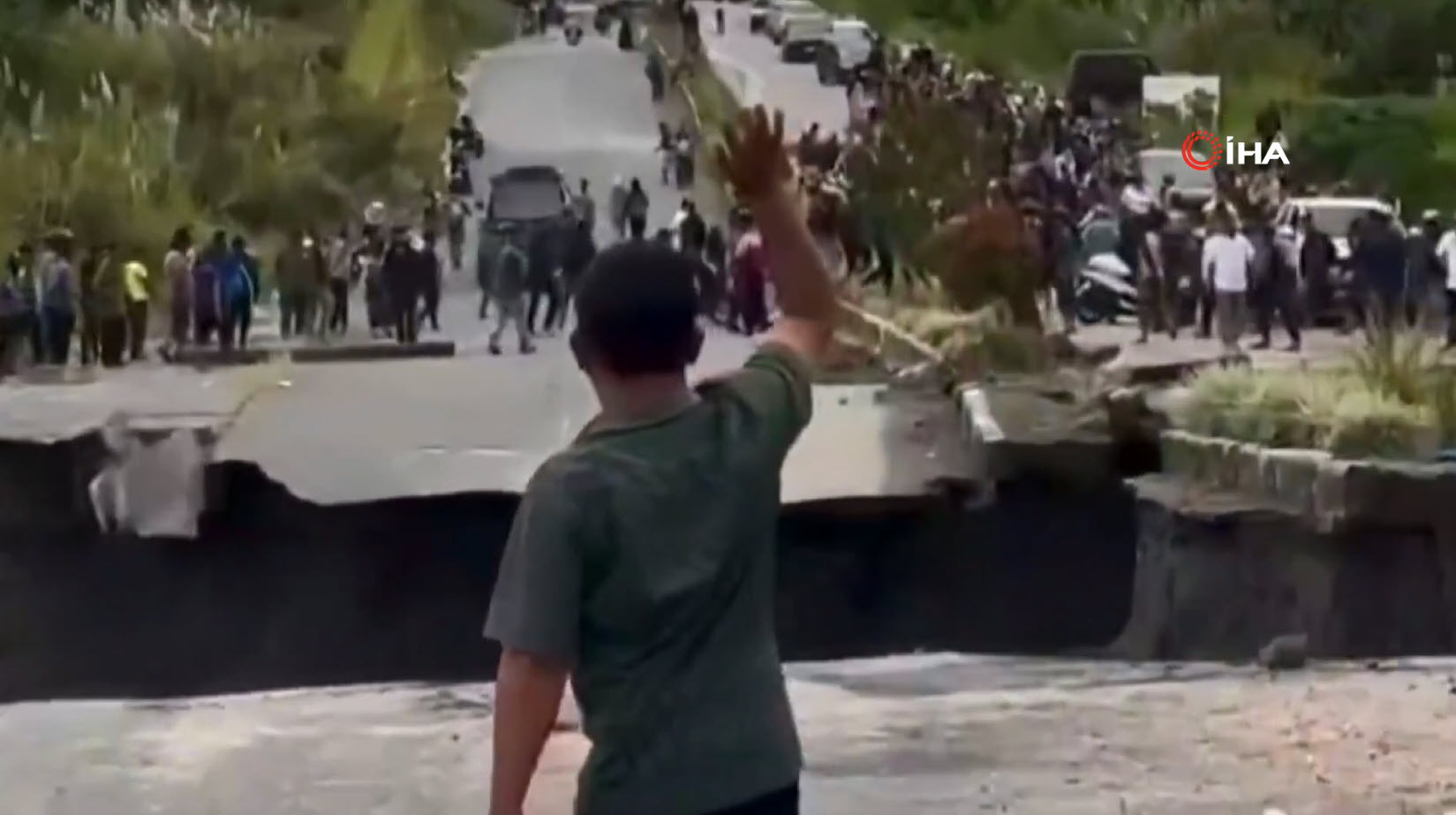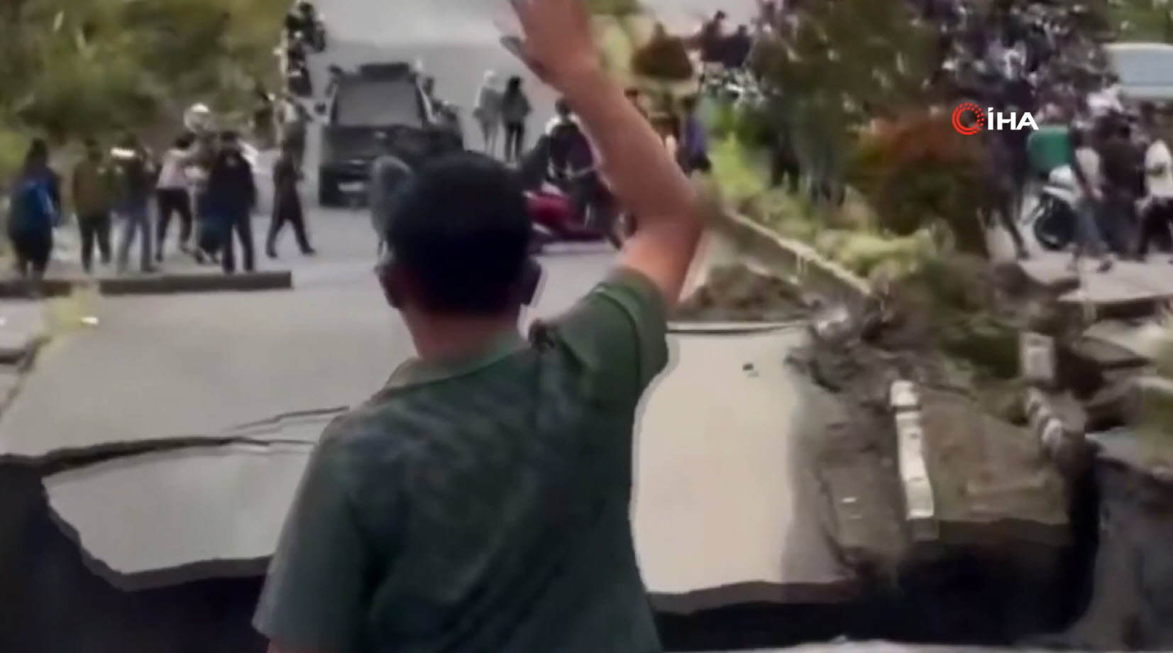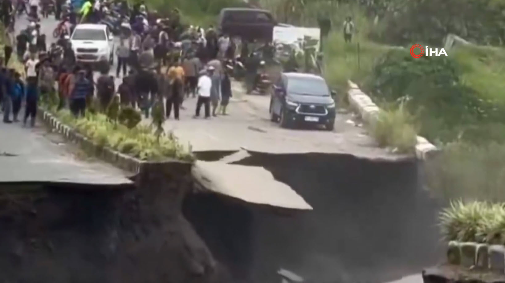 Görüntüler Endonezya'da kayda geçti. Sel ve heyelanların 770 can aldığı bölgede facianın eşiğinden dönüldü. Üzerinde araçların ve insanların olduğu yolun çöktüğü o anları izleyenlerin kanı dondu. Kaçan insanlar bir yandan da o anları telefonlarıyla kaydetmeye çalıştı.