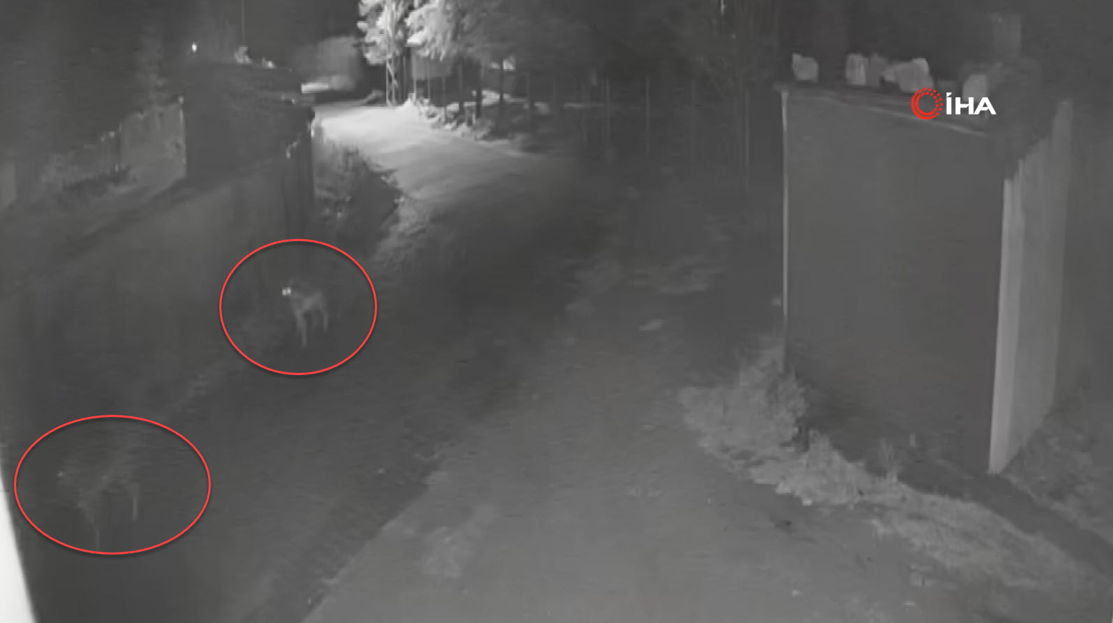 Gece yarısı evlerin dibine kadar geldiler... Vahşi doğa belgesellerini aratmayan görüntüler Türkiye'de kayda geçti. Kamera görüntülerini izleyen mahalleli şoke oldu. Bölge halkı saldırılara karşı uyarıldı.