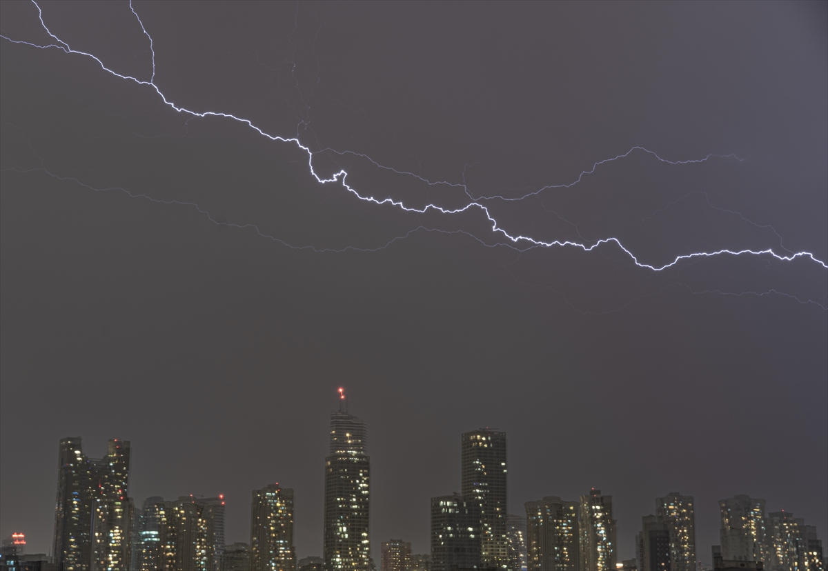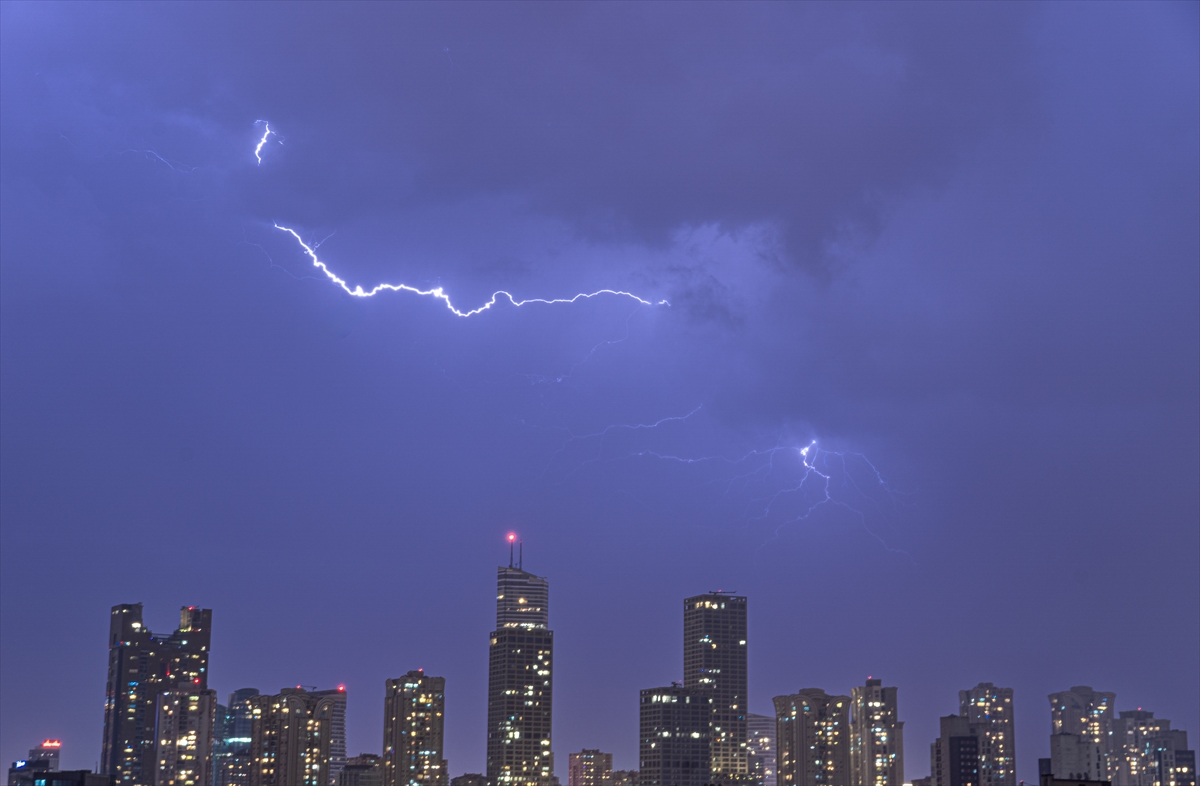 Yağışla birlikte zaman zaman şimşek çakması sonucu gökyüzü aydınlandı.