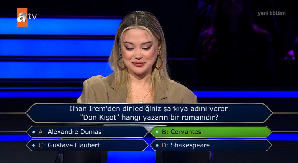 ATV'nin perşembe ve pazar akşamları izlenme rekoru kıran, hem eğlendirirken hem de para kazandıran bilgi yarışması Kim Milyoner Olmak İster'in 11 Ocak'ta yayınlanan yeni bölümünde renkli anlar yaşandı. Sevilen yarışmaya Adana'dan katılan üniversite öğrencisi Büşra Aydın, büyük ödül için kıyasıya yarışırken 500 bin TL'lik sorunun kilidini açtı.
