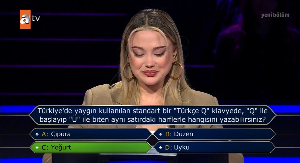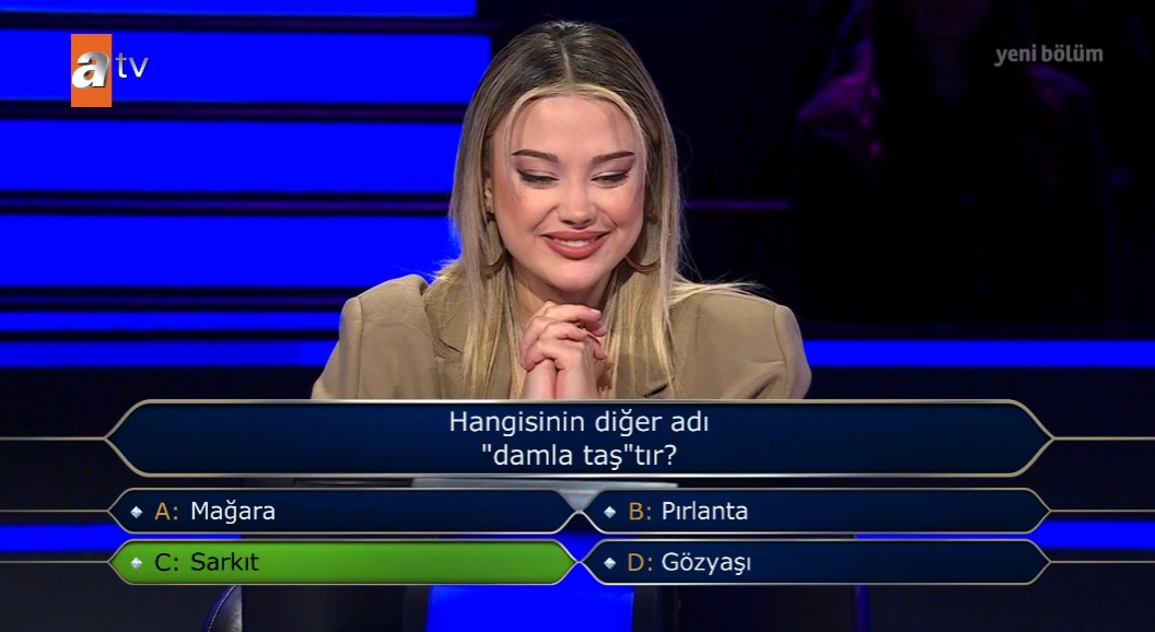 Büşra Aydın, 11. soruda doğru yanıtın d şıkkı yumurta olduğunu belirterek ani bir kararla soruyu yanıtladı. Yarışmacı aldığı ani kararla büyük pişmanlık yaşadı.
