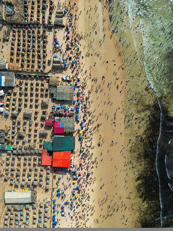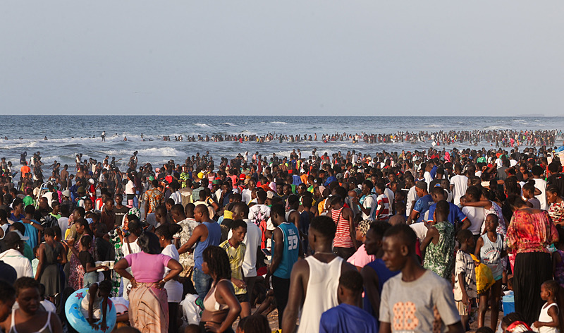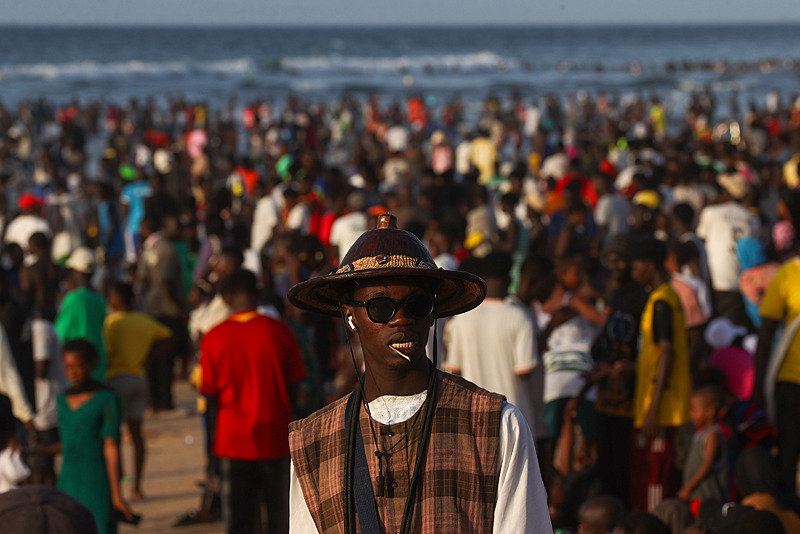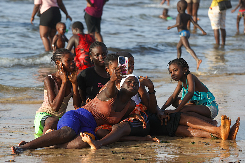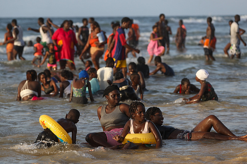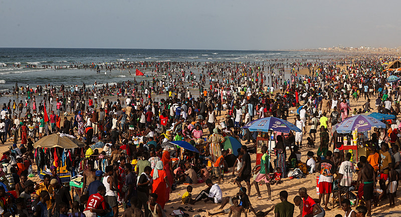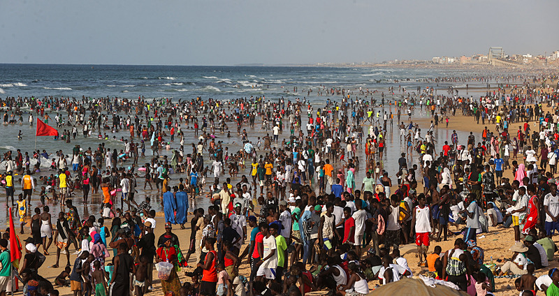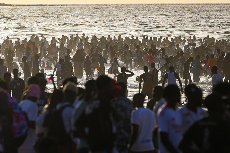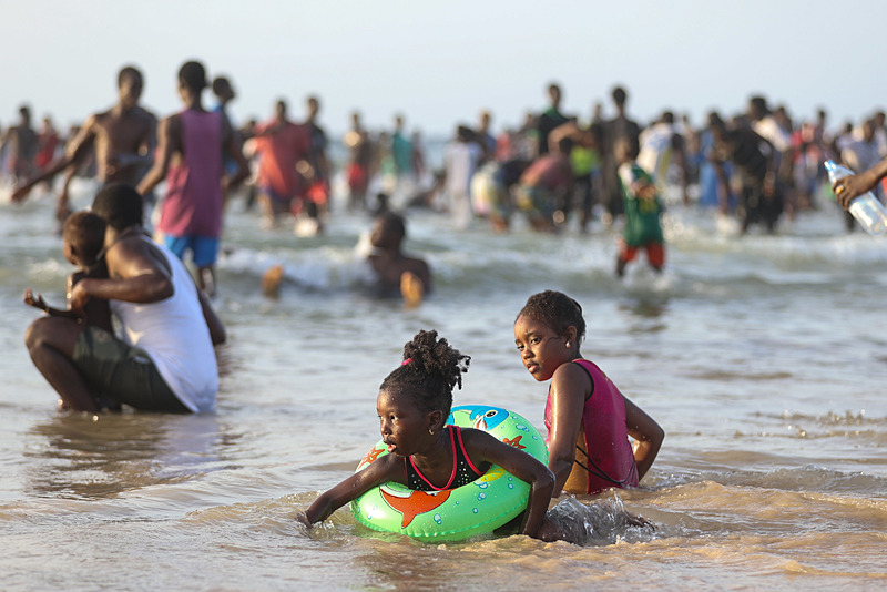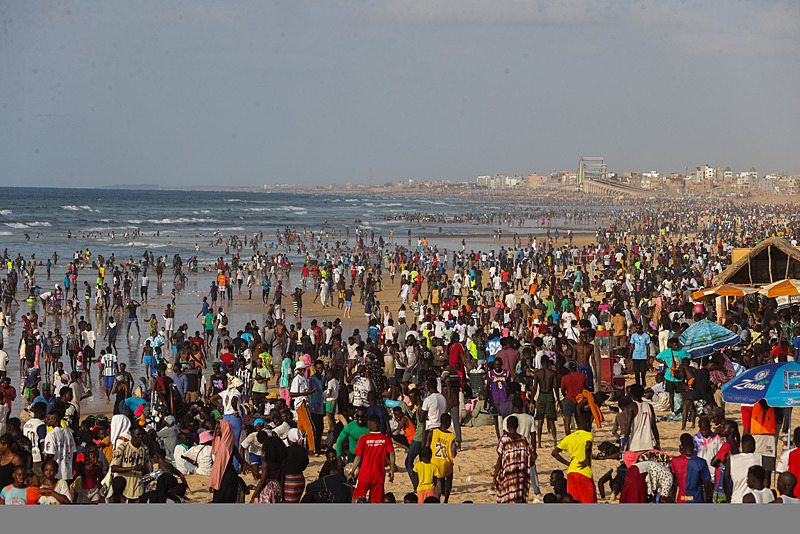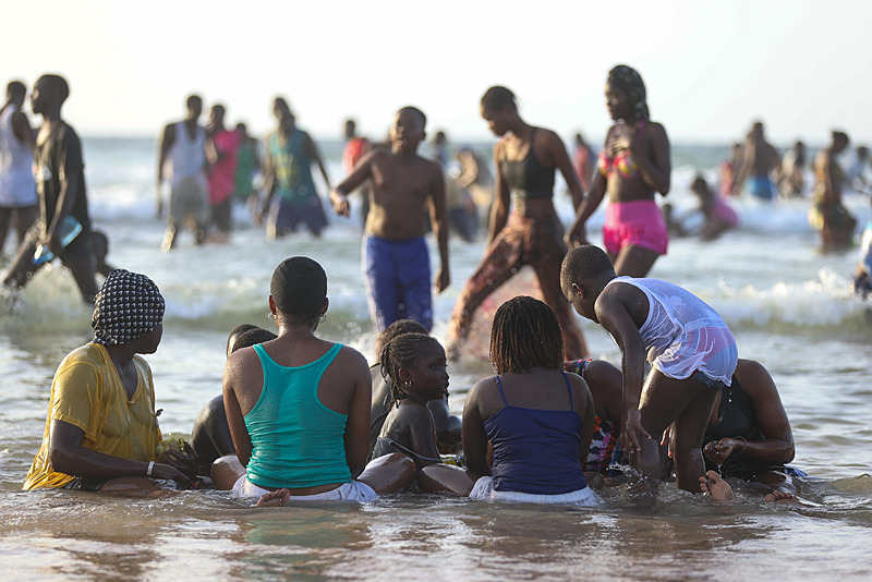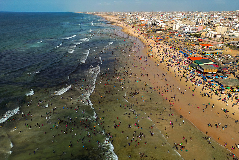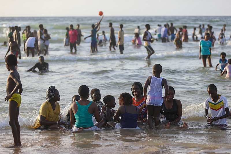 Dakar'ın kuzeybatısında yer alan ve kentin en kalabalık yerleşimlerinden olan Yoff semtindeki plaj havaların ısınmasıyla doldu taştı.