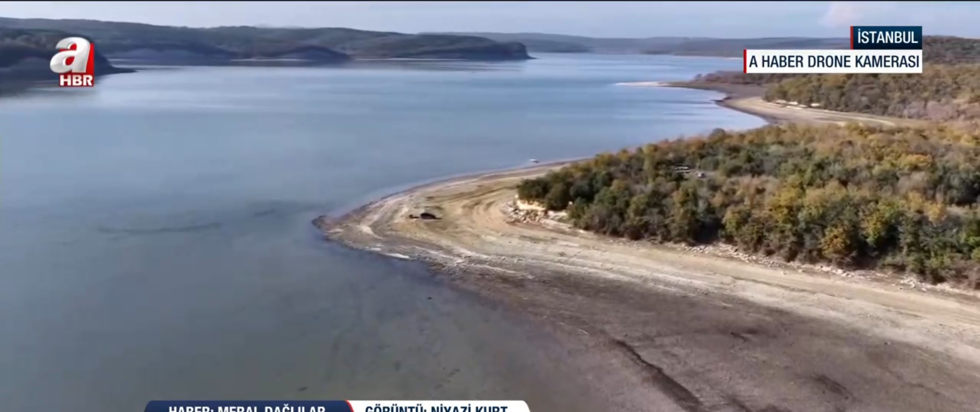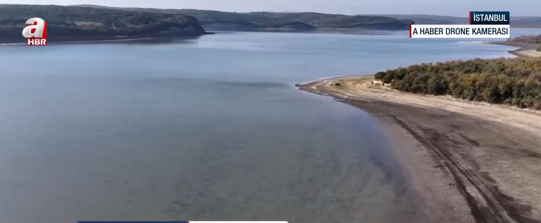 "Şu anda İstanbul'un Arnavutköy ilçesinde bulunan Terkos Gölü'ndeyiz. Burası, kentin en kritik su kaynaklarından biri olmasına rağmen kış mevsiminin gelmesine karşın yağışların yetersiz kalması nedeniyle su seviyesinde ciddi bir düşüş yaşanıyor. Detayları aktarırken, drone görüntülerini çeken arkadaşım Niyazi Kurt da gölün son durumunu ekranlara yansıtıyor.