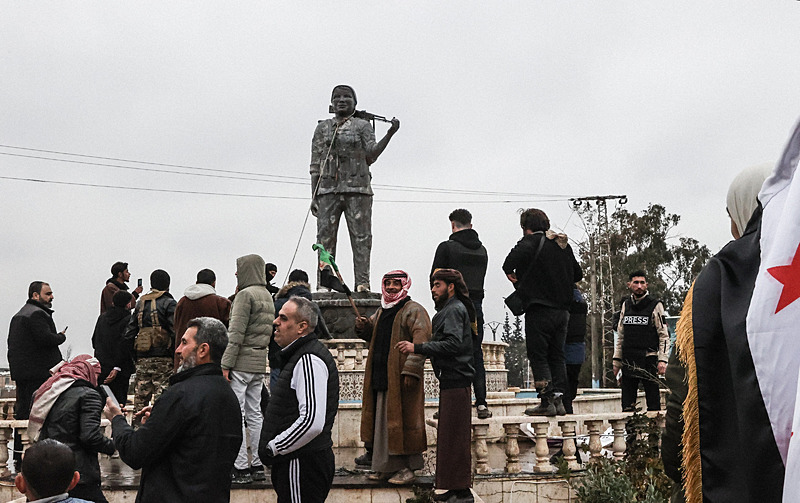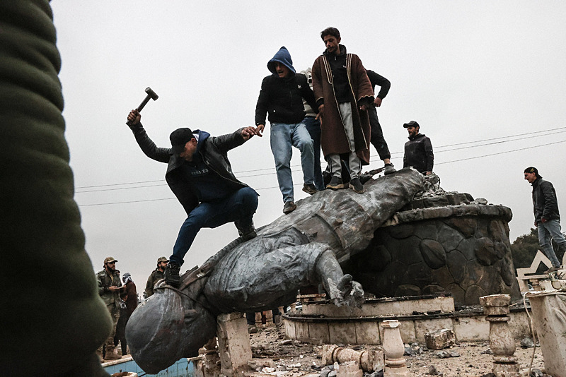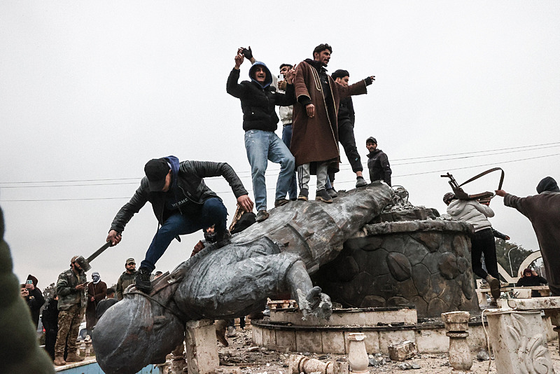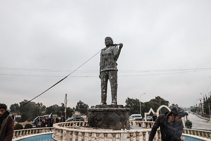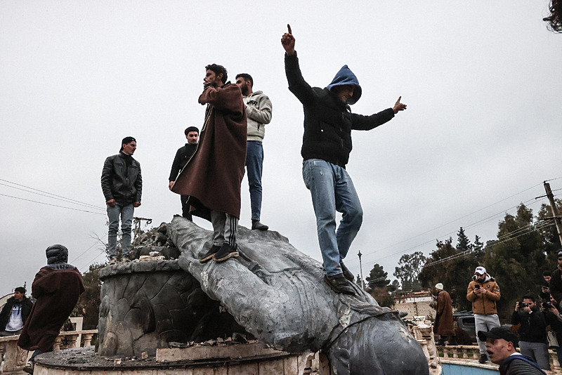 Suriye'nin Rakka iline bağlı Tabka kentinde halk, bölgenin terör örgütü YPG/SDG'den kurtarılmasını sokaklara çıkarak kutladı. Kutlamalar sırasında YPG/SDG'nin bazı önde gelen isimlerine ait heykellerin yıkıldığı görüldü. İşte o görüntüler…
