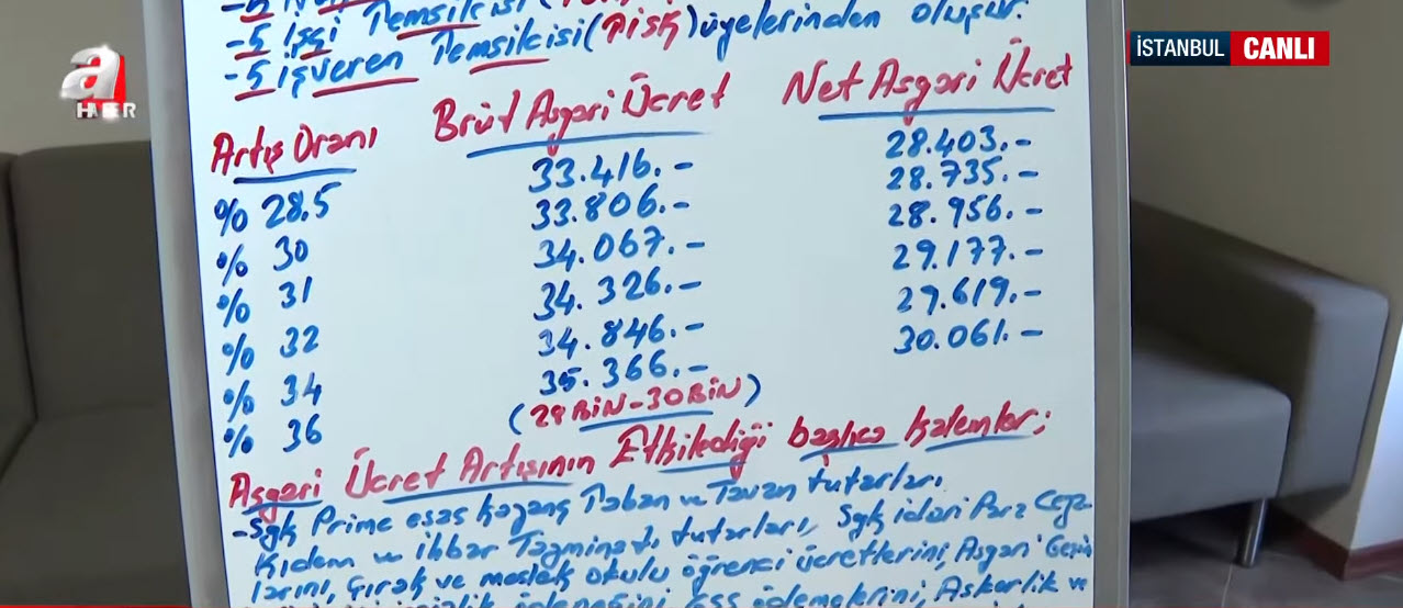 A Haber muhabiri Filiz Uçan Savaş detayları aktardı. Savaş, "Toplantı sonrasında edindiğimiz bilgiye göre toplantıda asgari ücret Tespit Komisyonu'nun yapısına dair herhangi bir gelişmenin olmadığı ve işveren tarafının da komisyonun yapısının bu şekilde devam etmesini istediğini aktardılar. İşçilerin de komisyonda daha etkili olmasıyla ilgili bir talepleri vardı." ifadelerini kullandı.