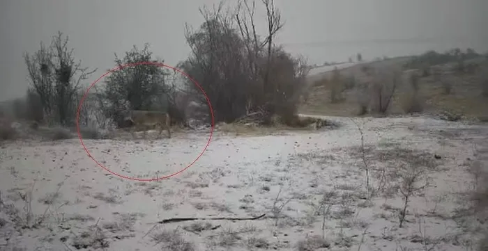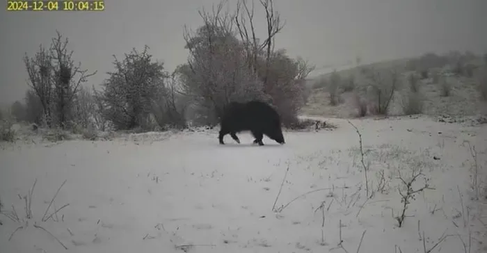 Sert kış şartlarında hayatta kalma mücadelesi veren yaralı yaban domuzu ve kurtların karla kaplı zorlu arazilerde dolaştıkları anlar kaydedildi.