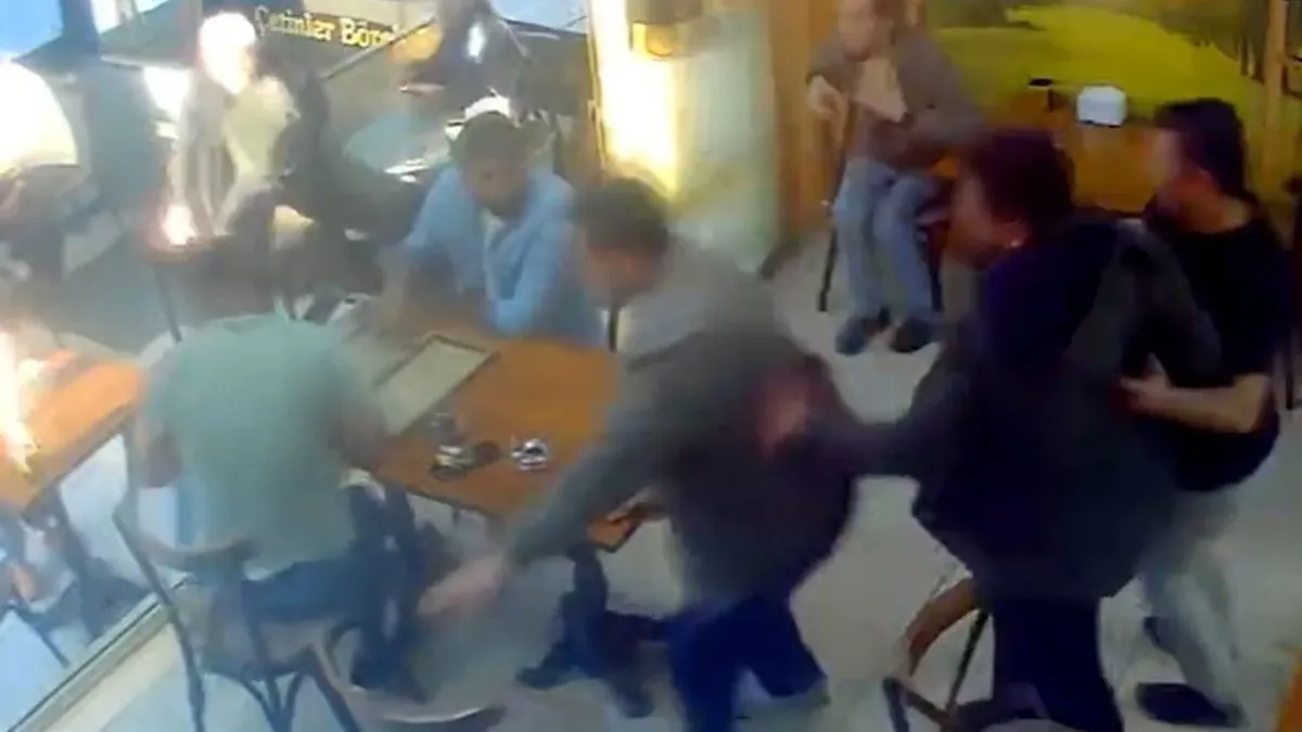 Görüntülerde, restoranda yemek yiyen vatandaşların bir anda masalardan kalkıp dışarıya doğru koşturduğu anlar yer aldı.