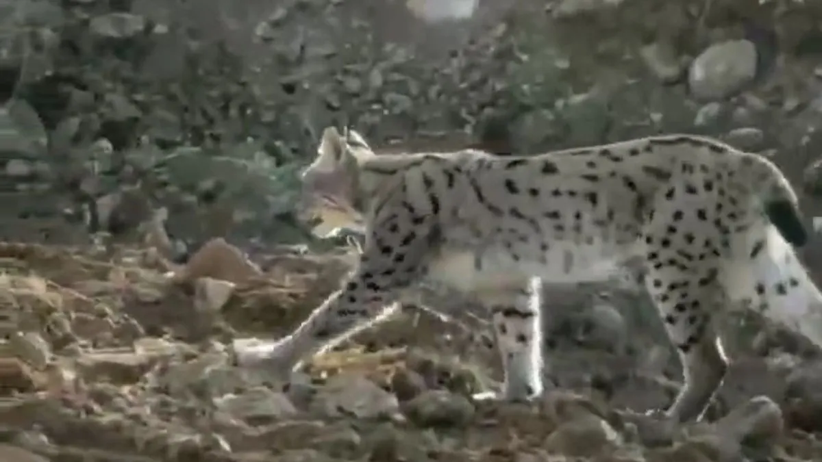 Hakkari'nin Çukurca ilçesinde nesli tükenme tehlikesi altında bulunan vaşak, cep telefonu kamerasıyla görüntülendi.