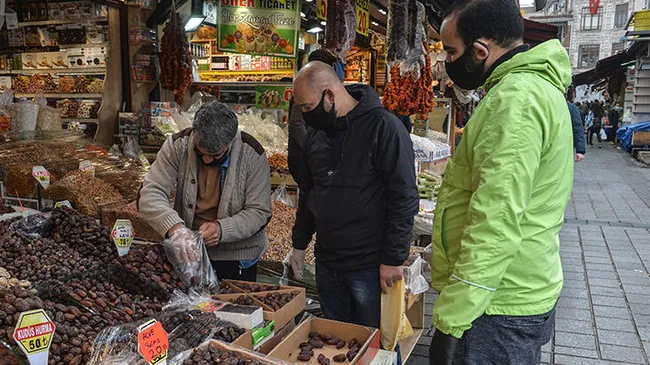 Yasak öncesi ihtiyacı olan her şeyi Eminönü'nden almaya geldiğini ifade eden Osman Yıldırım, "Kuruyemiş aldık biraz, bakacağız ne almak istiyorsak hepsini sırayla alıp gideceğiz. Poşetimde kuruyemiş, fıstık, hurma var. Hurmanın kilosu 70-90 lira gibi değişiyor. Ne gerekiyorsa şimdi alacağız çünkü 4 gün de dışarıyı çıkmayacağız sağlığımız için evde kal diyelim" dedi.
