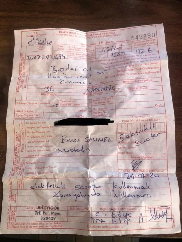 İstanbul Maltepe'de kiraladığı elektrikli scooter ile karayolunu kullanan Emin Sönmez isimli vatandaş trafik ekipleri tarafından durduruldu. Sönmez'e 'elektrikli scooter'ı kara yolunda kullanmaktan kaynaklı 132 TL ceza kesildi.