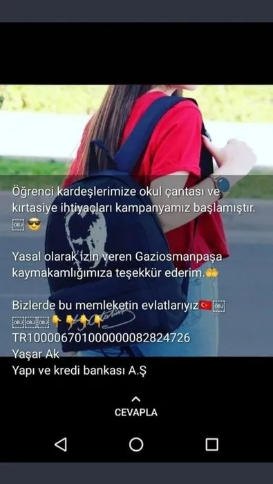 Okullarda yüz yüze eğitim bu hafta başladı. Okullarda eğitimin başladığı bu dönemde, yeni bir dolandırıcılık yöntemi ortaya çıktı. Dolandırıcılar, kaymakamlıklardan yasal izin aldıklarını iddia ederek "Öğrencilere kırtasiye ürünü ve çanta yardımı kampanyası" başlığı altında, sosyal medyada banka hesap numaraları paylaşıyor, para topluyorlar. Yaptıkları sahtekarlığa dahil etmeye çalıştıkları kurumlardan biri de, Gaziosmanpaşa Kaymakamlığı oldu. Gaziosmanpaşa Kaymakamlığı'ndan yasal izin aldığını iddia eden dolandırıcılar, öğrenciler için yardım kampanyası başlattığını öne sürerek sosyal medyada IBAN numaralarını paylaştı. Kaymakamlık ise durumu fark etmesi üzerine harekete geçerek, kendilerinden izin almayan bu kişilere karşı vatandaşları uyardı.