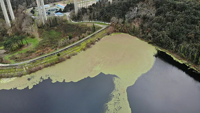 İstanbul'da Elmalı Barajı’nda korkutan görüntü! Yeşil tabaka ile kaplandı