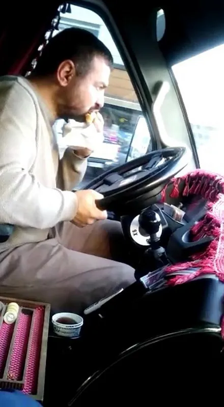 Olay, Meram ilçesinde, Lalebahçe hattında sefer yapılan minibüste meydana geldi. Kimliği henüz belirlenemeyen sürücü, sol elinde tuttuğu ekmek arası yiyeceği yerken, sağ eliyle de direksiyonu kontrol edip, minibüsü kullandı. Bu anlar, yolcu tarafından cep telefonu kamerasıyla kaydedilip, sosyal medyadan paylaşıldı. Minibüs şoförünün koronavirüs tedbirleri kapsamında maske takma kuralını da ihlal ettiği görüldü.