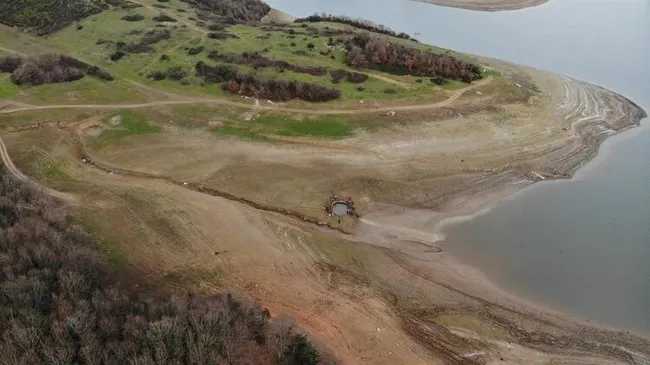 İstanbul'da da kuruyan Ömerli Barajı'nın son durumu havadan çekilen görüntülerde gözler önüne serildi.