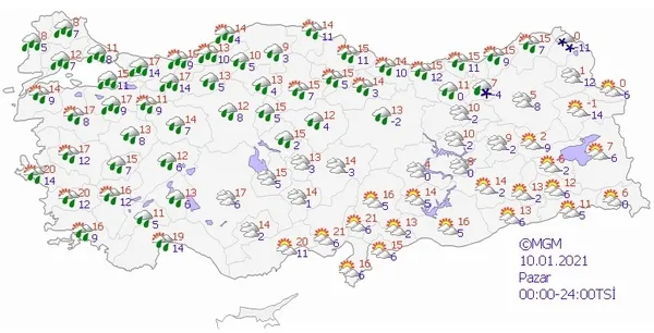 9 Ocak Cumartesi günü iste Türkiye'nin yarısı yağmurlu yarısı da güneşli olacak.