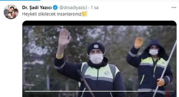 Bu durumu Tuzla Belediye Başkanı Dr. Şadi Yazıcı, sosyal medya platformu Twitter üzerinden esprili bir video ile paylaştı. Başkan Yazıcı, Kemal Sunal'ın Çöpçüler Kralı filminden akıllarda kalan müzik eşliğinde temizlik yapan personelin videosunu paylaştı. Başkan Yazıcı, personellerine 'Heykeli dikilecek insanlarsınız' diyerek tebrik etti.