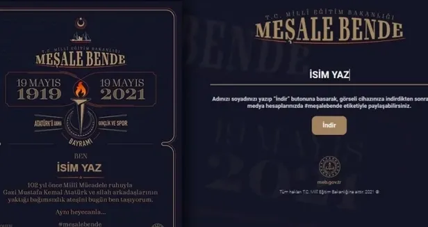 Milli Eğitim Bakanlığı tarafından 19 Mayıs Atatürk'ü Anma, Gençlik ve Spor Bayramı için geliştirdiği bir uygulamadır. Milli Mücadele'nin 102. yılının kutlandığı bugünlerde etkinliğe katılan kişinin isminin yazılı olduğu bir kart hazırlanıyor. Üzerinde ise, ' 102 yıl önce Milli Mücadele ruhuyla Gazi Mustafa Kemal Atatürk ve silah arkadaşları tarafından yakılan bağımsızlık ateşini bugün ben taşıyorum.' sözleri yer alıyor.