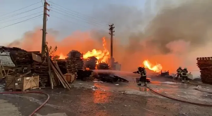 Kısa sürede büyüyen yangın depodaki tüm paletleri sardı.