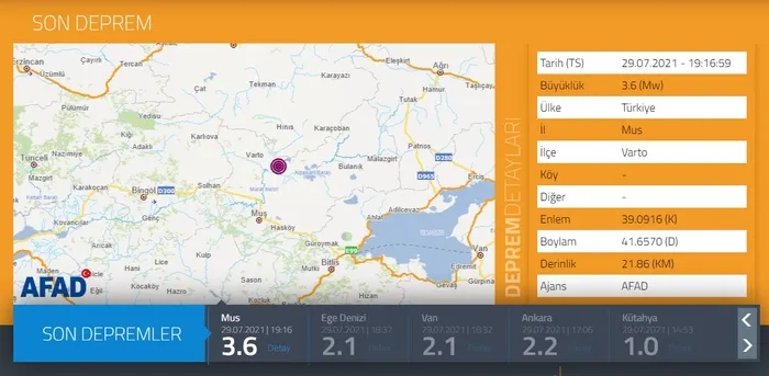 Son dakika: Muş Varto'da deprem! AFAD açıkladı (2021 son depremler)