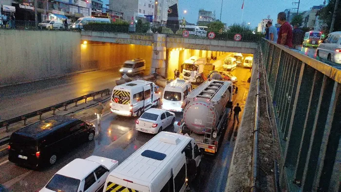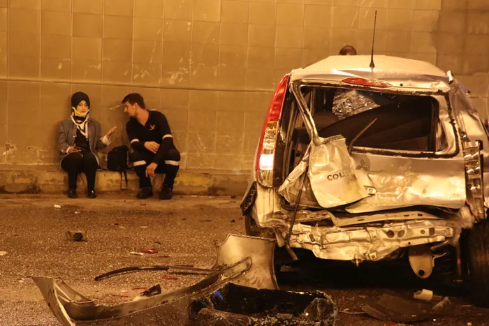 Derince tüneli içinde ters istikamete dönen minibüsü görerek frene basan aralarında tırların da olduğu 16 araç da duramayarak birbirine girdi. 4 kişinin yaralandığı kazaya karışan araçlardaki sürücü ve yolcular, can güvenlikleri için araçlarını terk ederek yol kenarına çıktılar.