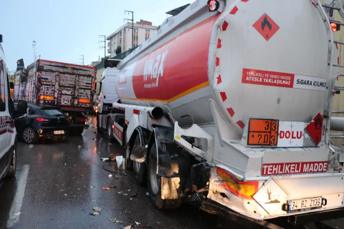 Kocaeli'nin Derince ilçesi D100 karayolunda yağmur yağışı ile kayganlaşan yolda kontrolden çıkan 17 araç birbirine girdi. 4 kişinin yaralandığı kazada yol trafiğe kapandı.