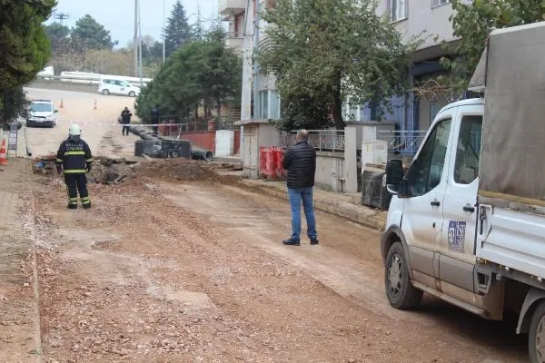 Kocaeli Büyükşehir Belediyesi ekiplerinin Derince ilçesinde bulunan Bezendi Sokak'ta altyapı çalışması sırasında, kepçenin doğal gaz boru hattına çarpması sonucu boruda kaçak meydana geldi.