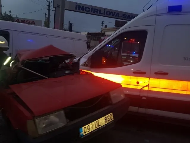 Edinilen bilgiye göre, Efeler ilçesine doğru seyir halinde olan A.Ş.'nin kullandığı 09 DB 672 plakalı ambulans, sanayi sitesi kavşağında AK Parti Germencik İlçe Yönetim ve Yürütme Kurulu Üyesi Özer Aksoy yönetimindeki 09 UL 830 plakalı otomobil ve A.U. idaresindeki 09 AAF 701 plakalı ticari araç ile çarpıştı.