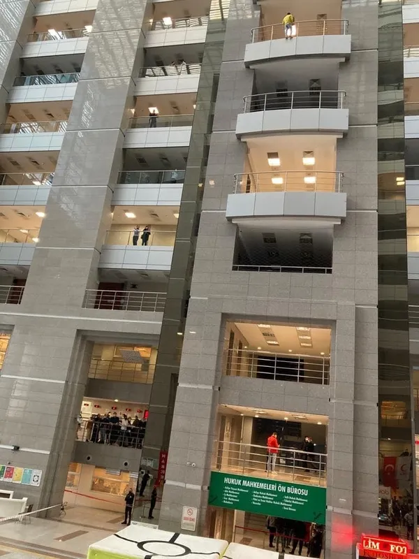 Son dakika haberi...İstanbul Çağlayan'da bulunan İstanbul Adalet Sarayı'nda bir şahıs 6. kattaki korkuluklara çıkarak intihar girişiminde bulundu. Korkuluklardan sarkan şahsın Ağır Ceza Mahkemesi'nde yargılandığı öğrenildi. Zeminde tüm önlemlerin alındığı görüldü. İntihar girişiminde bulunan şahsın ikna edildiği bilgisine ulaşıldı.